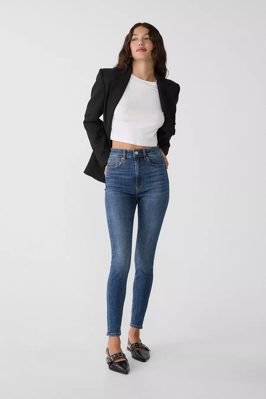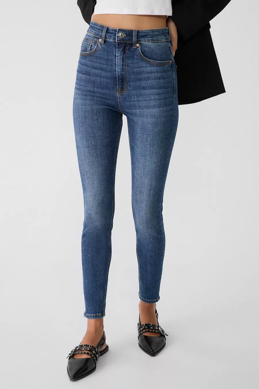Bein-Typ: Schmal geschnitten Bund: Super hoher Bund Farbe: Dunkelblau Material: Baumwolle Tasche: 5 Taschen Länge: Regular Stoffart: Denim Silhouette: Skinny Anlass: Casual/Alltag Schnitt: Skinny Verschlussart: Knopf Pflegehinweis: Type 0 Herkunft: KH