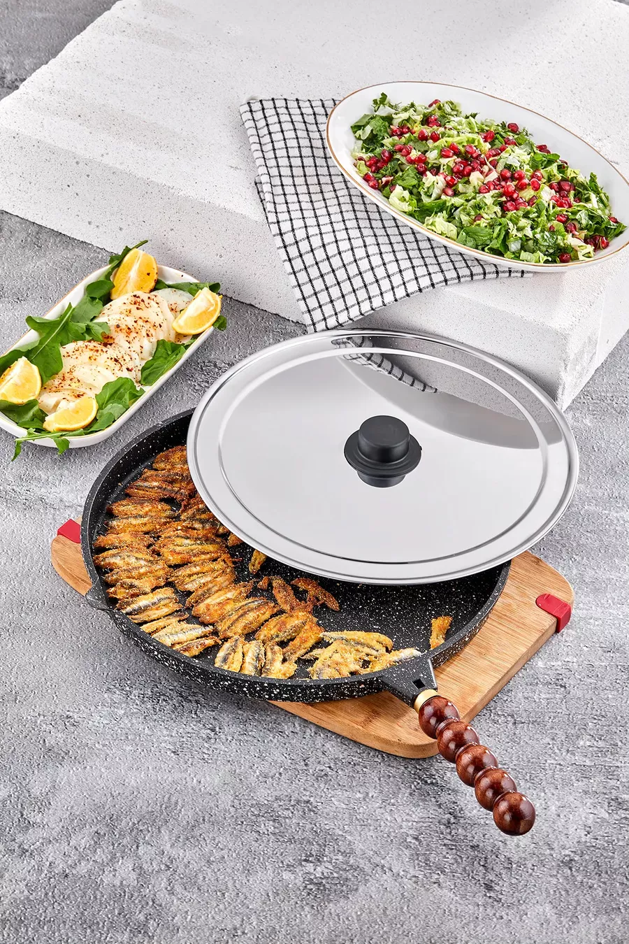 Größe/Gestalt: 36 cm Anzahl der Teile: 1 Teil Eigenschaft: Für den Ofen geeignet Produkttyp: Fischpfanne Außenmaterial: Granit Innenmaterial: Granit Farbe: SCHWARZ Material: Gusseisen Farbe: Schwarz