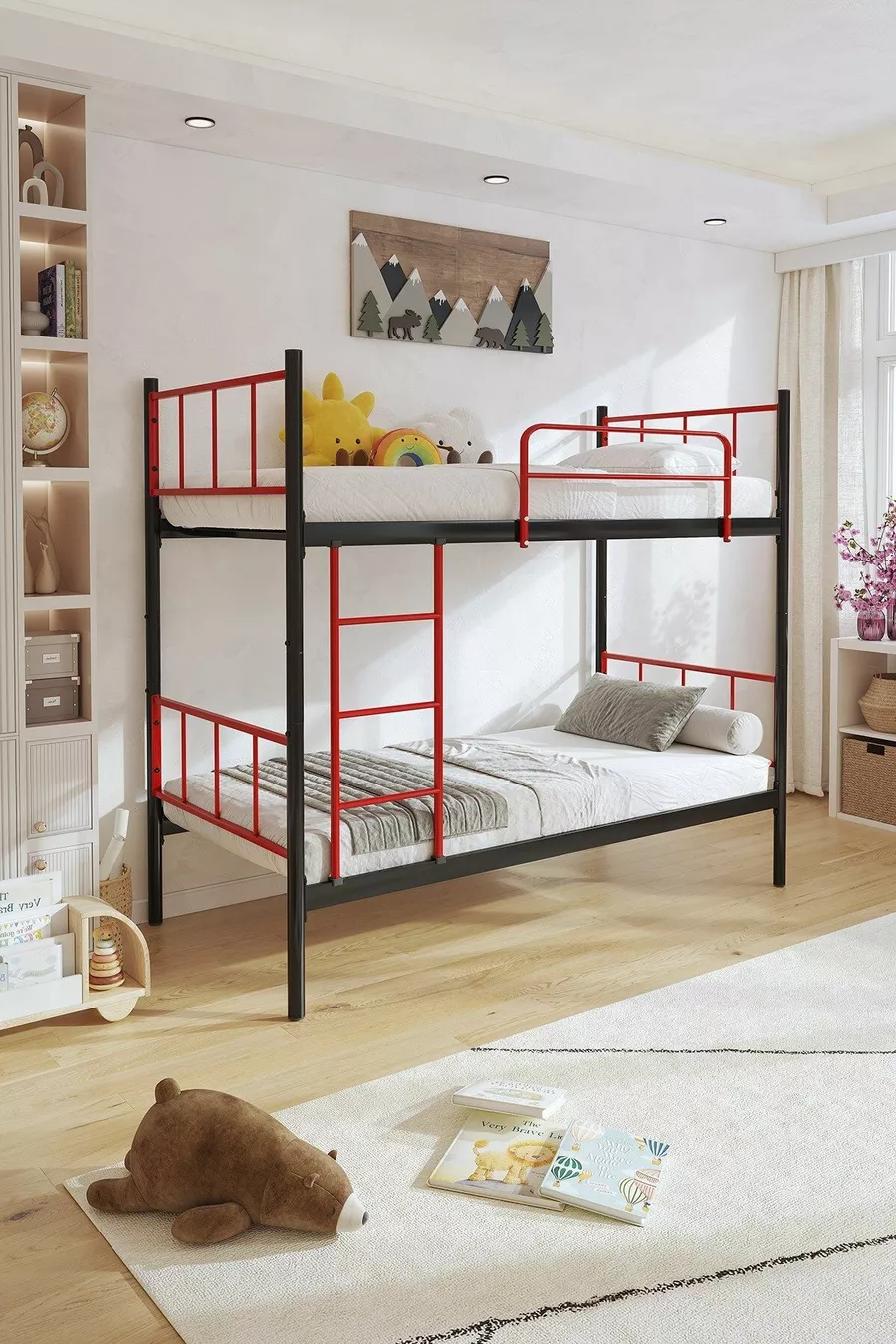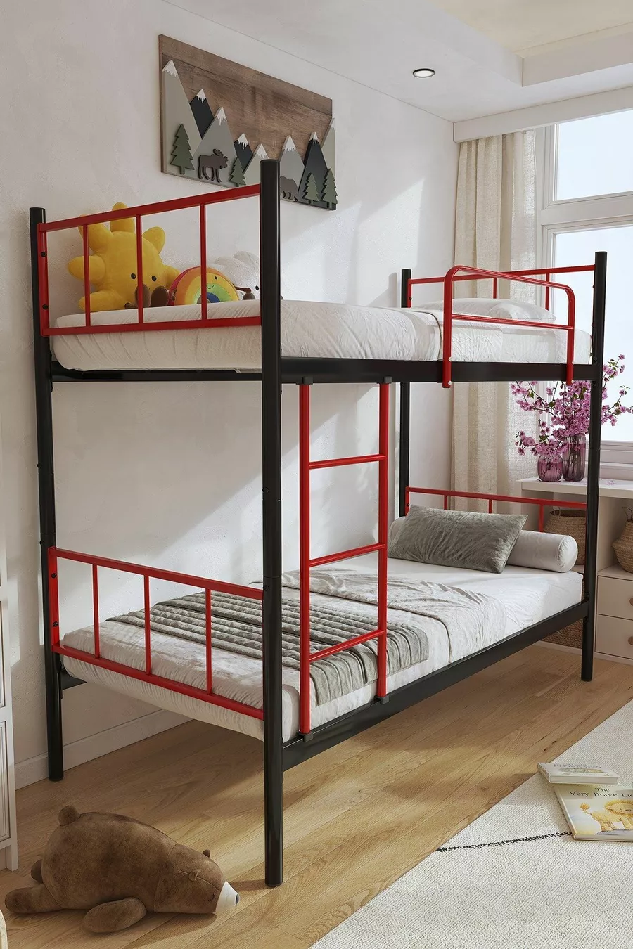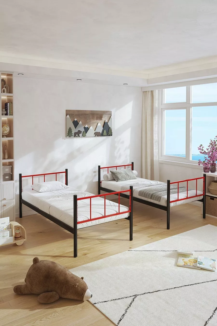Tekno Etagenbett Rot Kompatibel mit Matratze Abnehmbares Metallbett