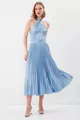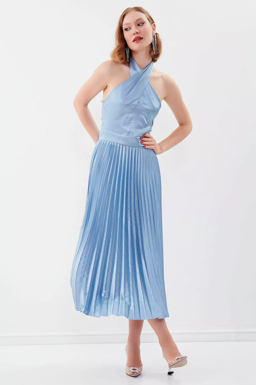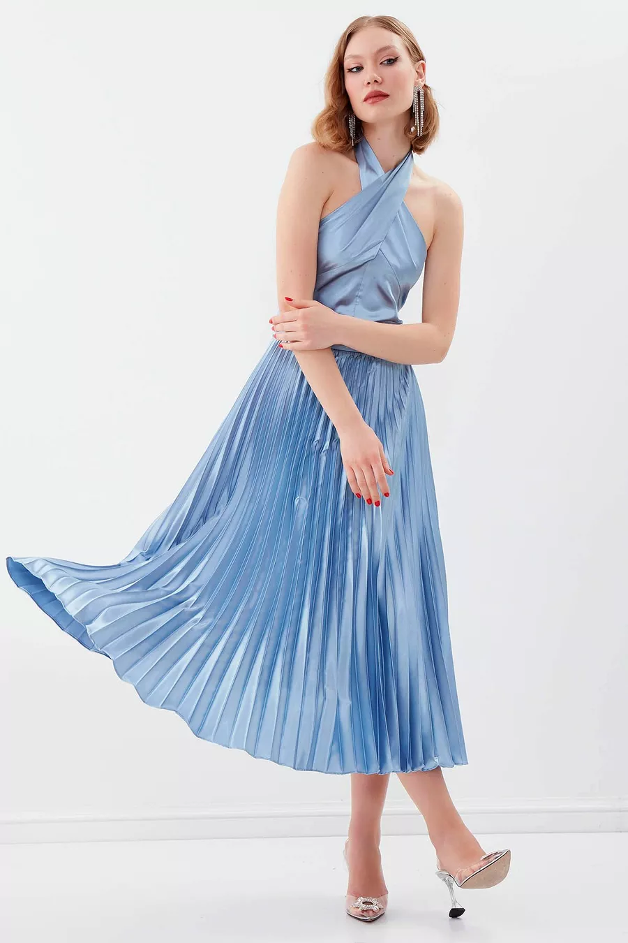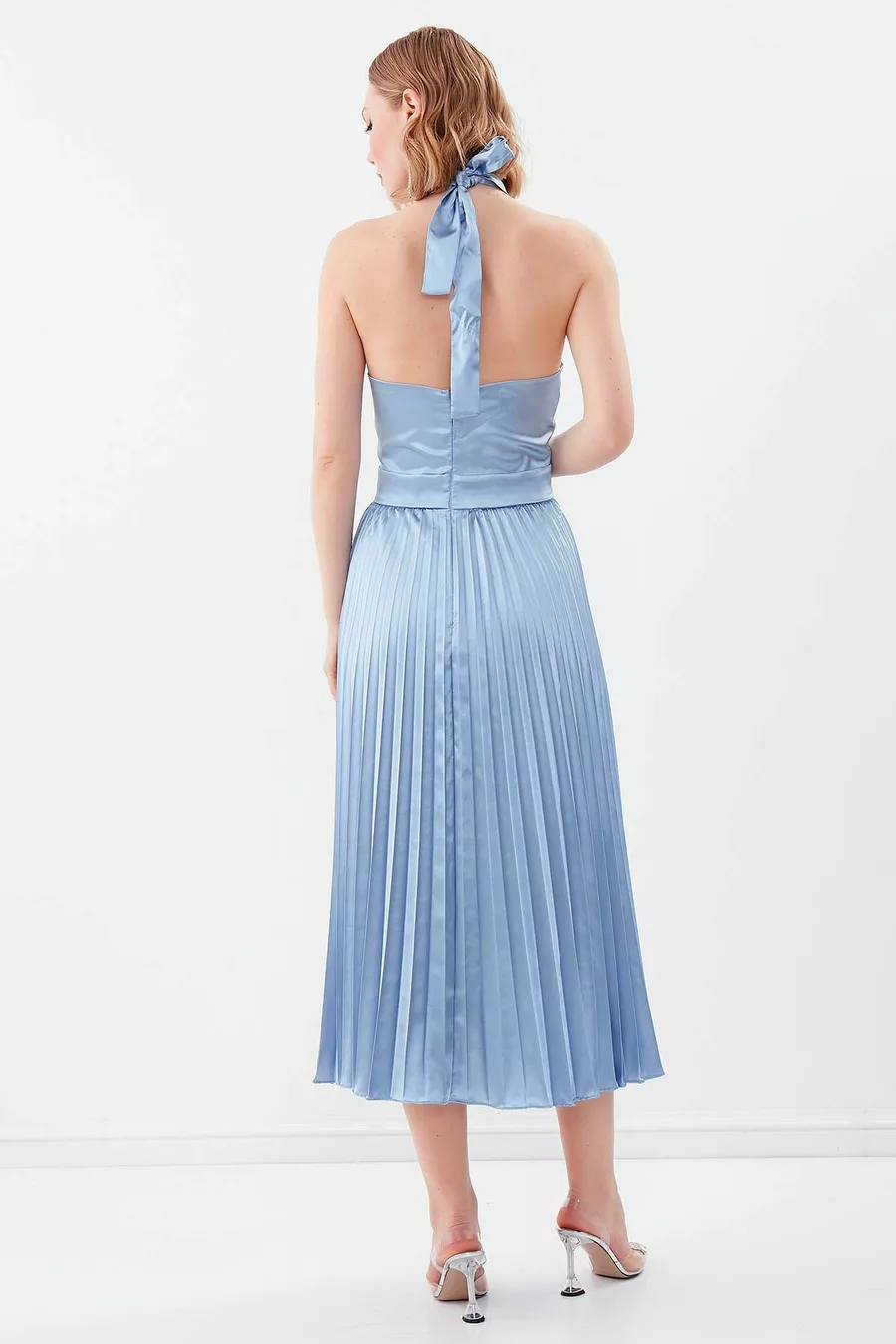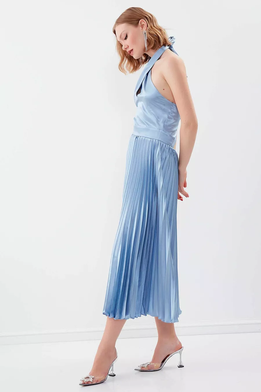 Tief ausgeschnittenes Plisseekleid mit Krawatte