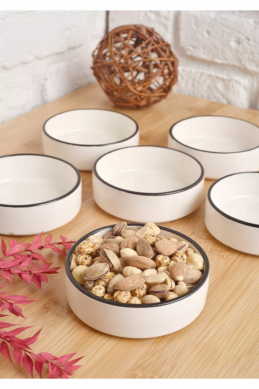 Anzahl der Teile: 6 Volumen: 100 - 249 ml Produkttyp: Snackschale Farbe: Schwarz Material: Keramik
