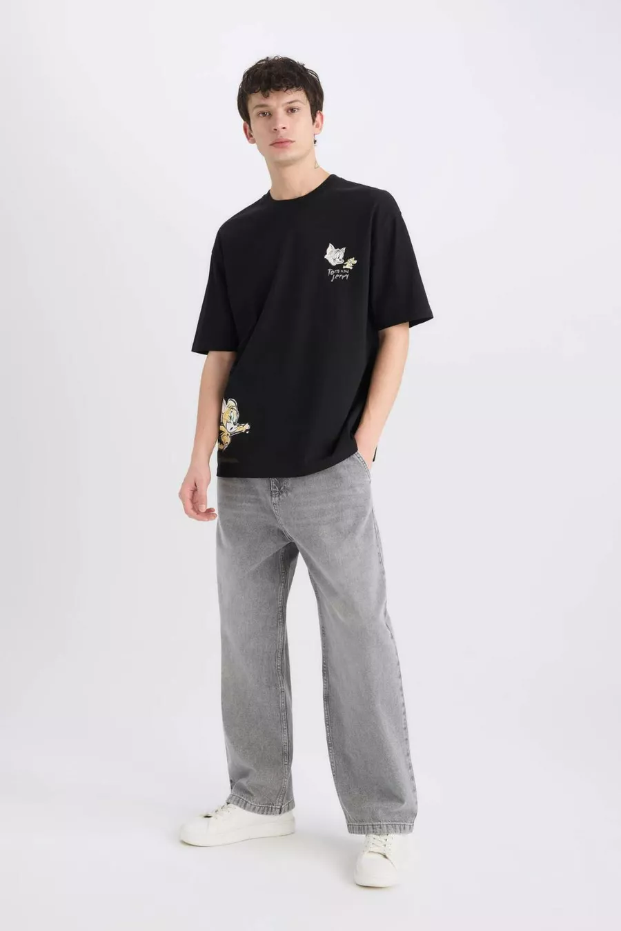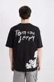 Tom & Jerry Oversize Weit geschnittenes T-Shirt mit Rundhalsausschnitt und kurzem Arm, bedruckt, SM