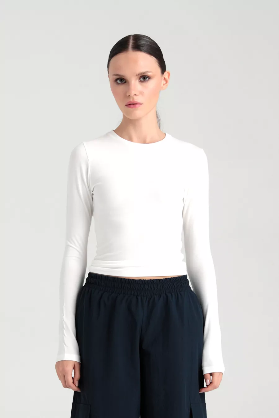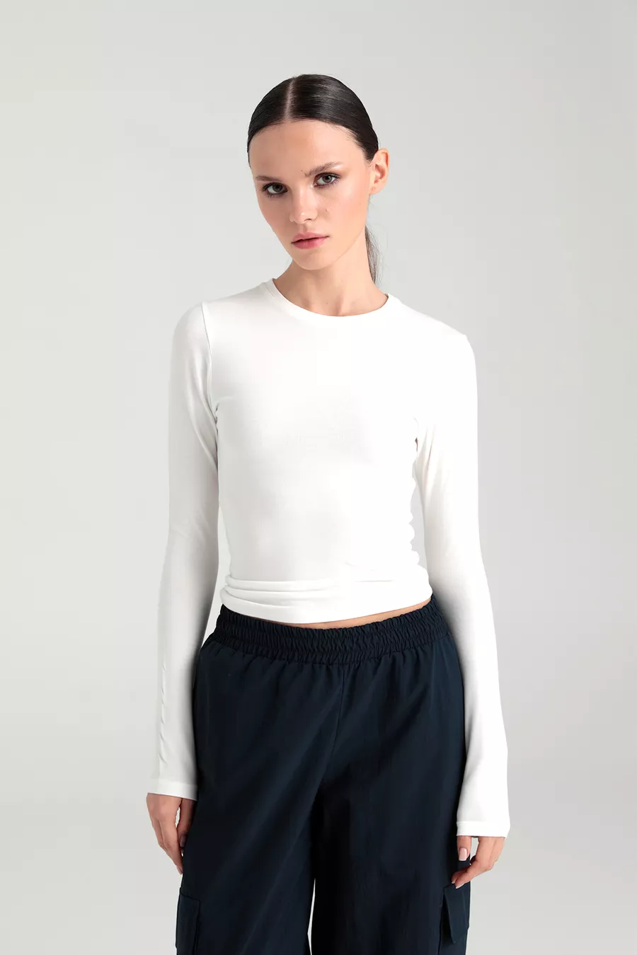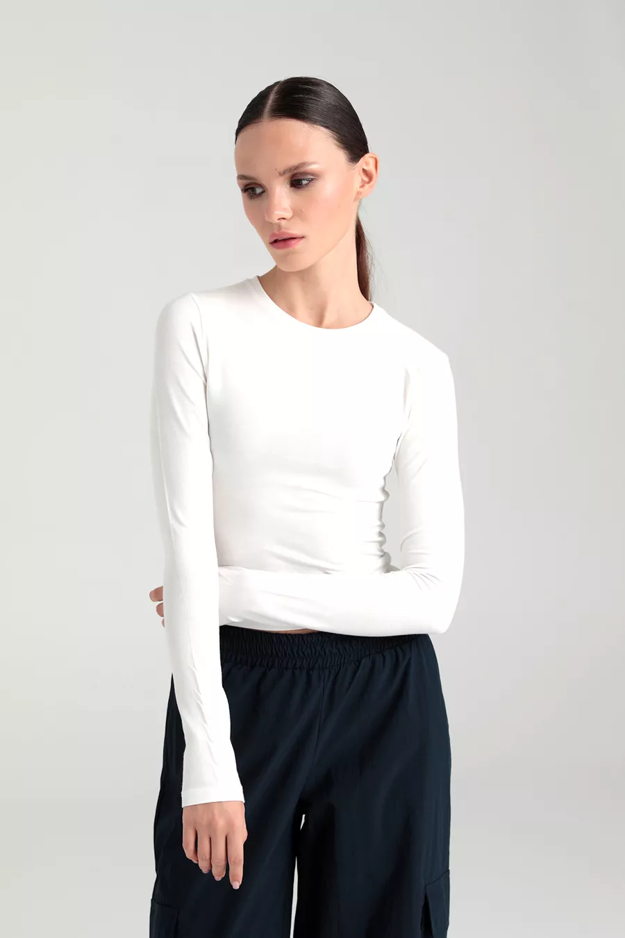 Ultra weiche Bluse mit rundem Ausschnitt, Farbe Ecru
