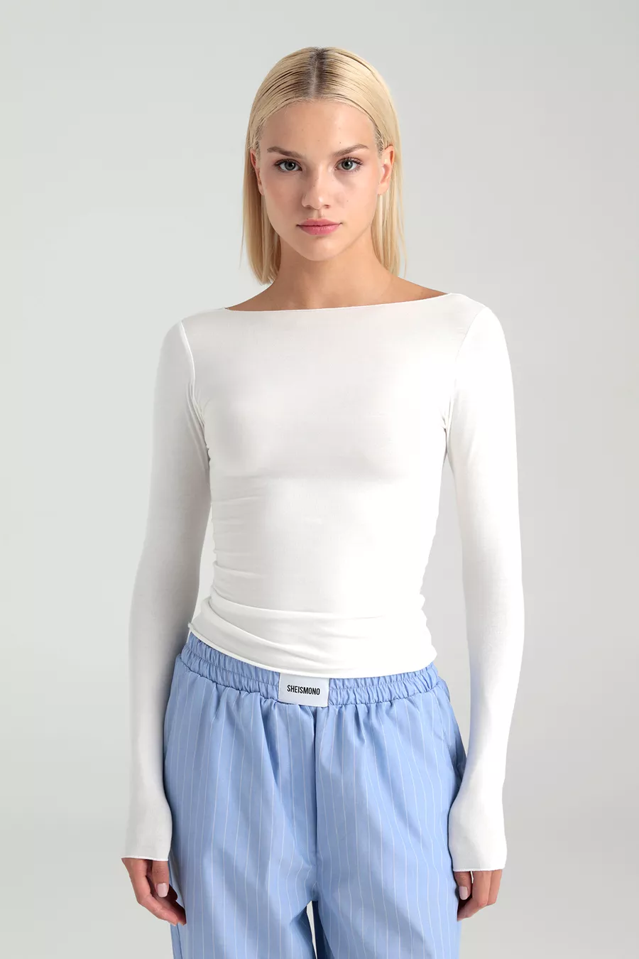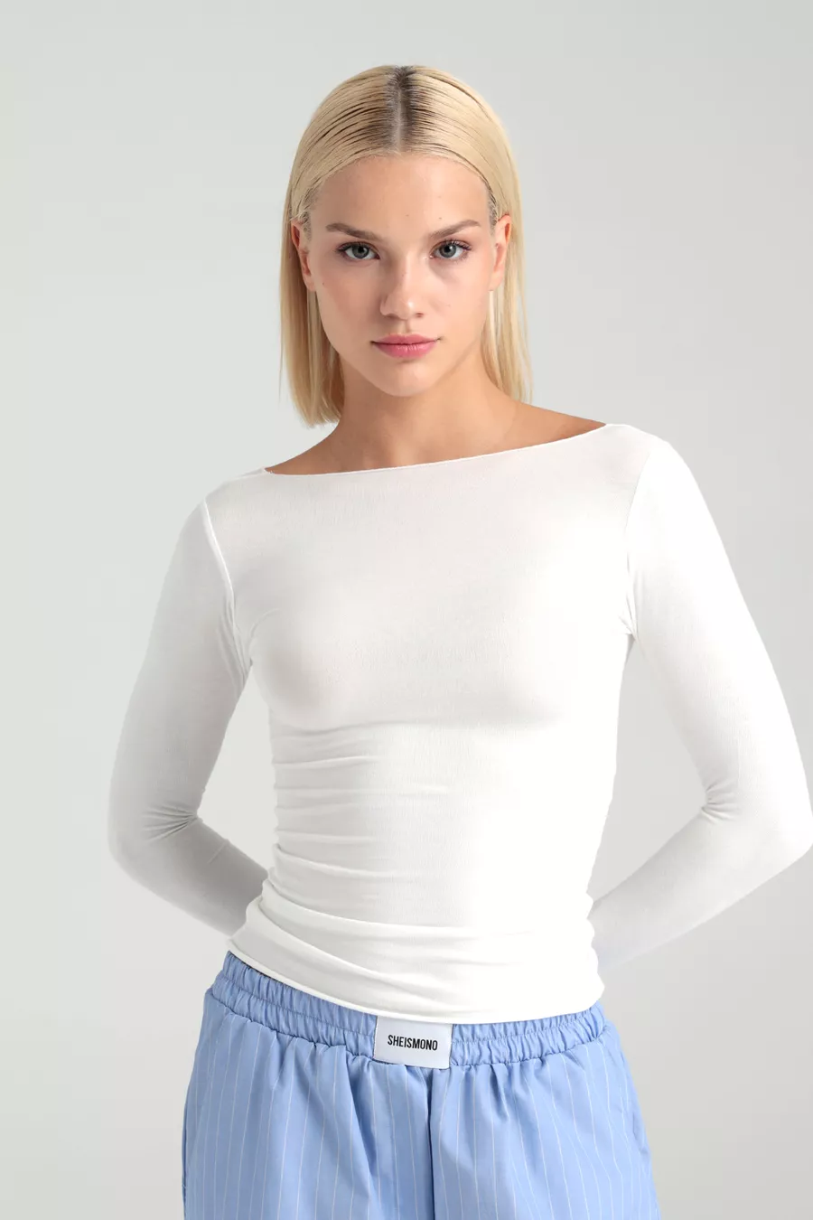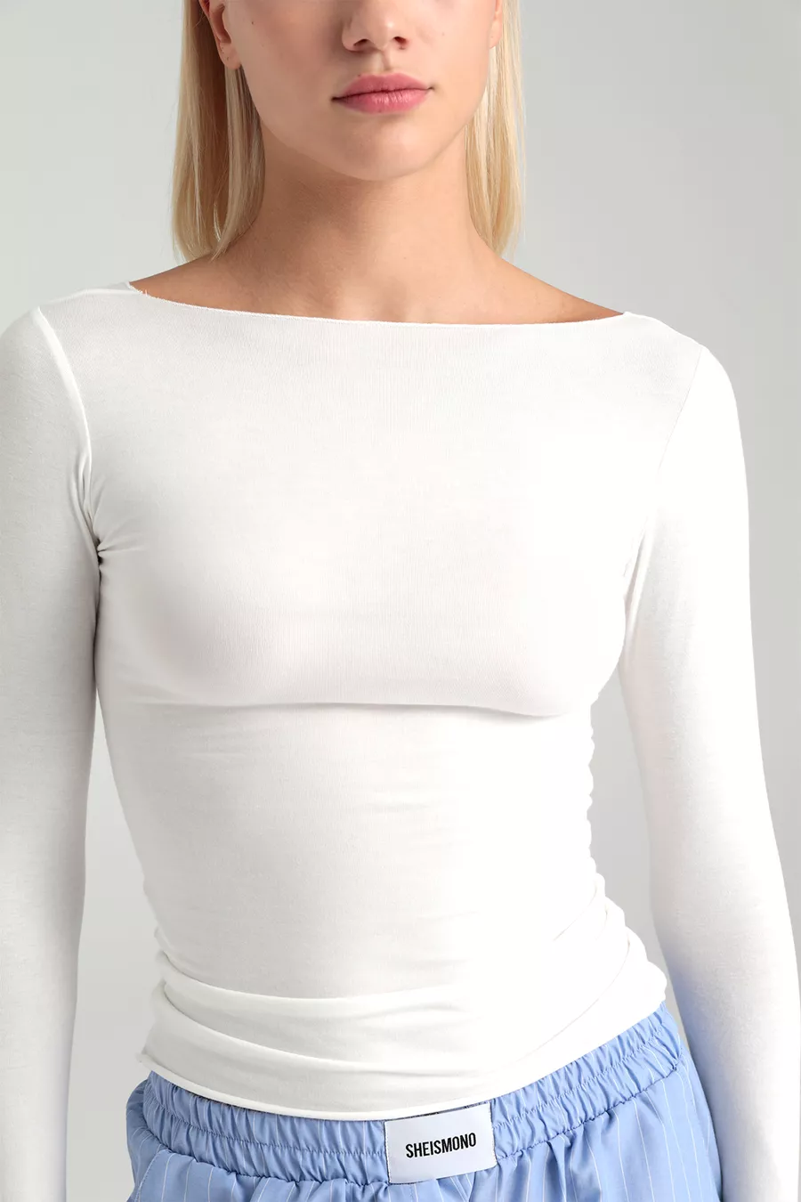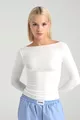 Ultraweiche Bluse mit Boot-Ausschnitt, Ecru