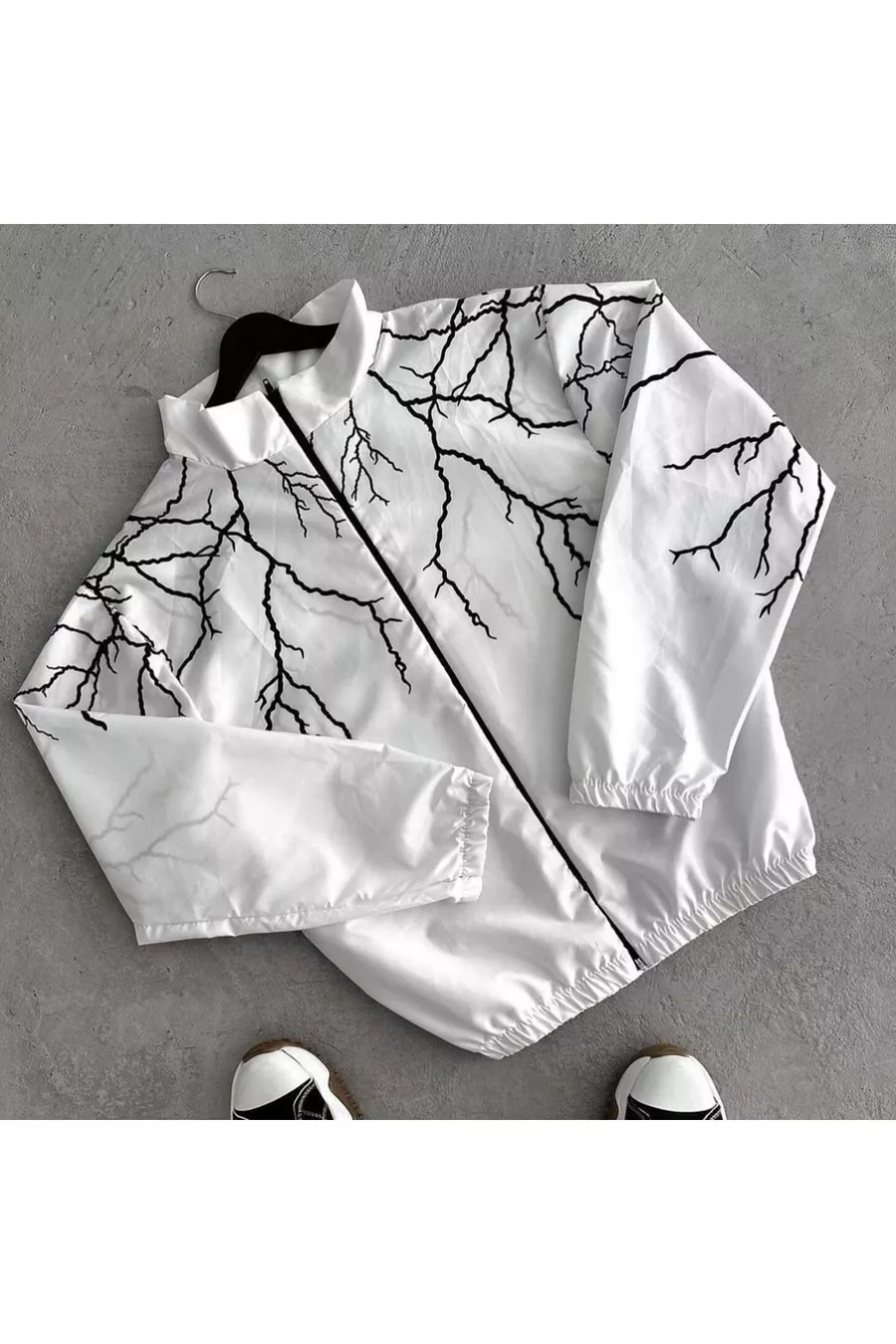 Unisex Kinder Weißer Blitz Digital Bedruckter Dünner % Wasserdichter Reißverschluss Regenjacke