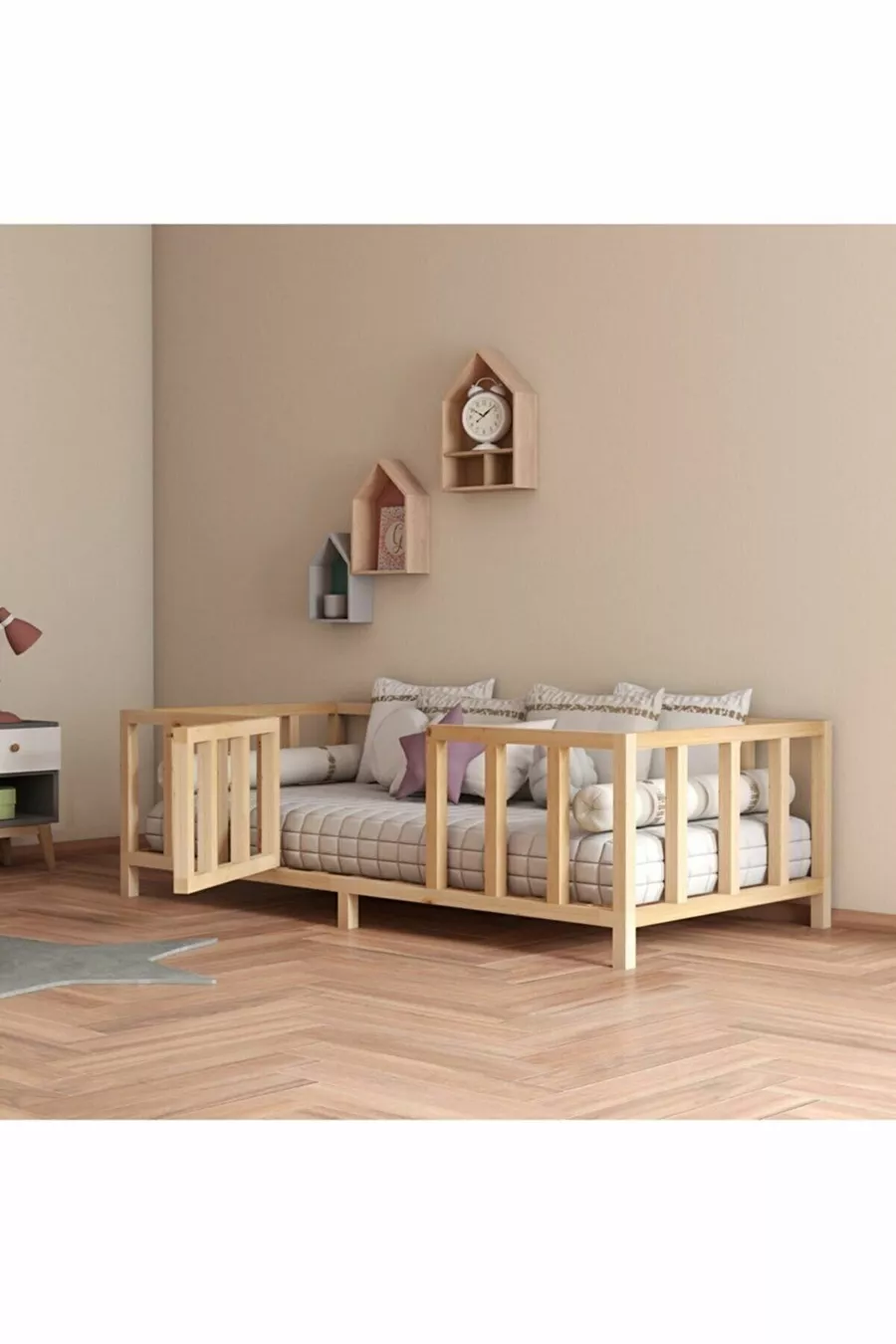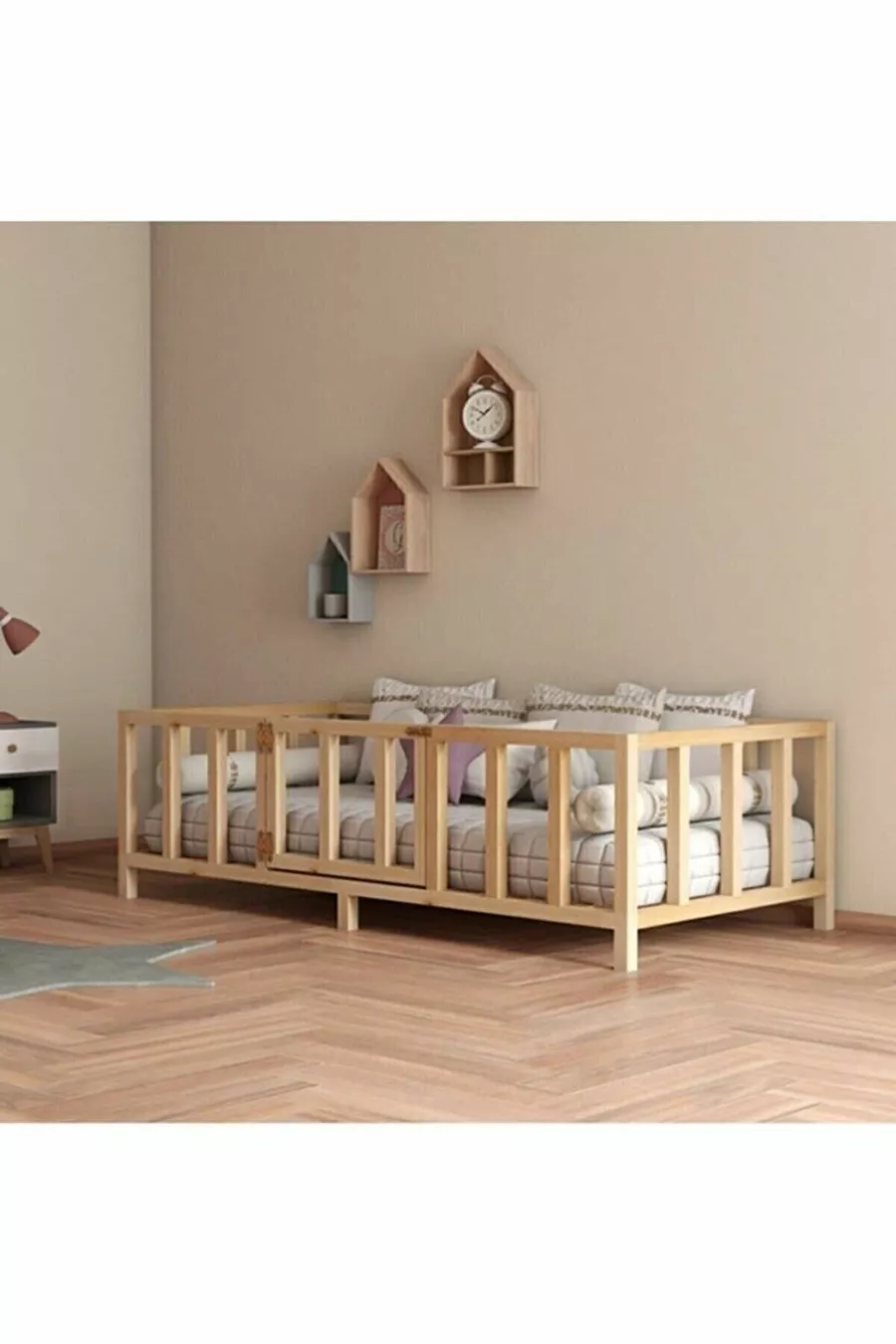 Unisex Montessori Baby- und Kinderbett mit Tür aus natürlichem Holz