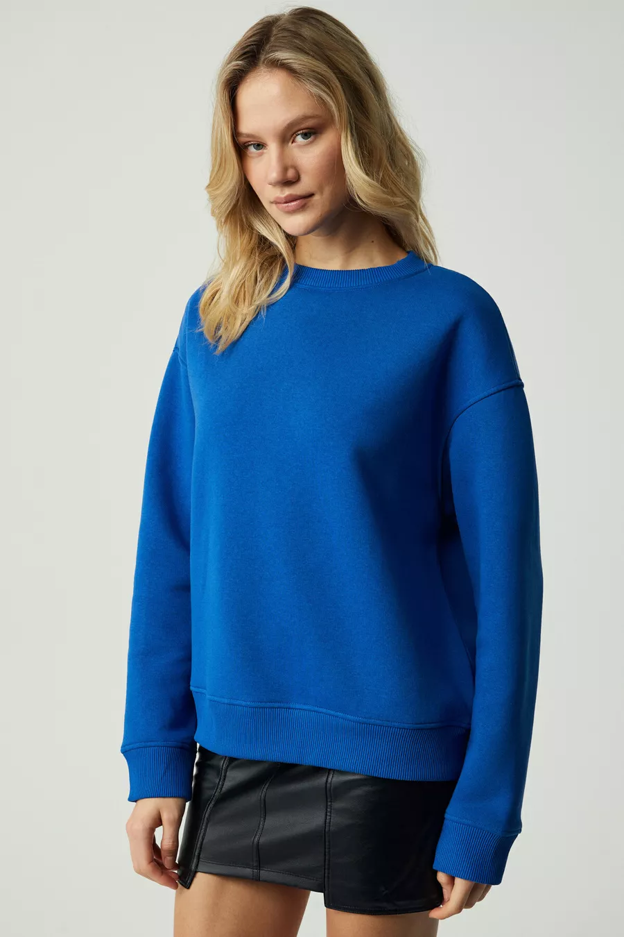 VANELTINA Damen Sweatshirt aus Bio-Baumwolle, weich, mit Fleece-Innenseite und Rundhalsausschnitt, in Parlamentblau