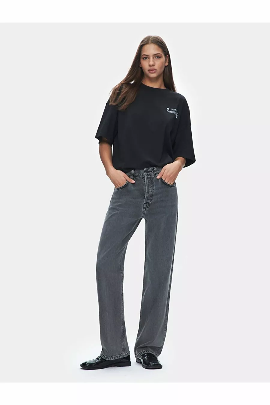 Hosentyp: Gerades Bein Taillen-/Gürtelstatus: Ohne Gürtel Taille: Normale Taille Farbe: Grau Material: Denim Taschen: 5 Taschen Produkttyp: Gerade Länge: Standard Stoffart: Denim Schnitt: Straight Anlass: Casual/Alltag Passform: Straight Muster: Einfarbig Besondere Eigenschaften: Gewaschen Verschlussart: Mit Knöpfen Webart: Rigid Nachhaltigkeitsdetails: Nein Pflegehinweise: T09 Herkunft: TR Boxzustand: Keine Box Packungsinhalt: Einzelstück