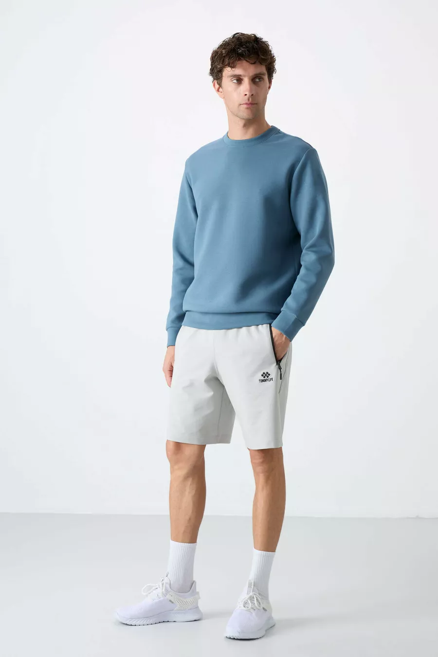 Waldgrün Basic O-Ausschnitt Bequemer Herren-Sweatshirt -