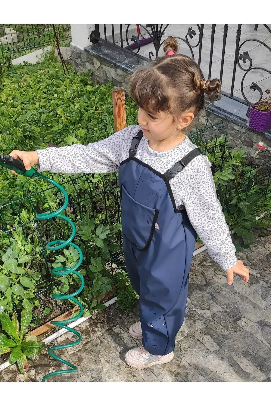 Wasserdichter Stoff - Spiel- und Regenoverall - Latzhose - 2-9 Jahre - Dunkelblau