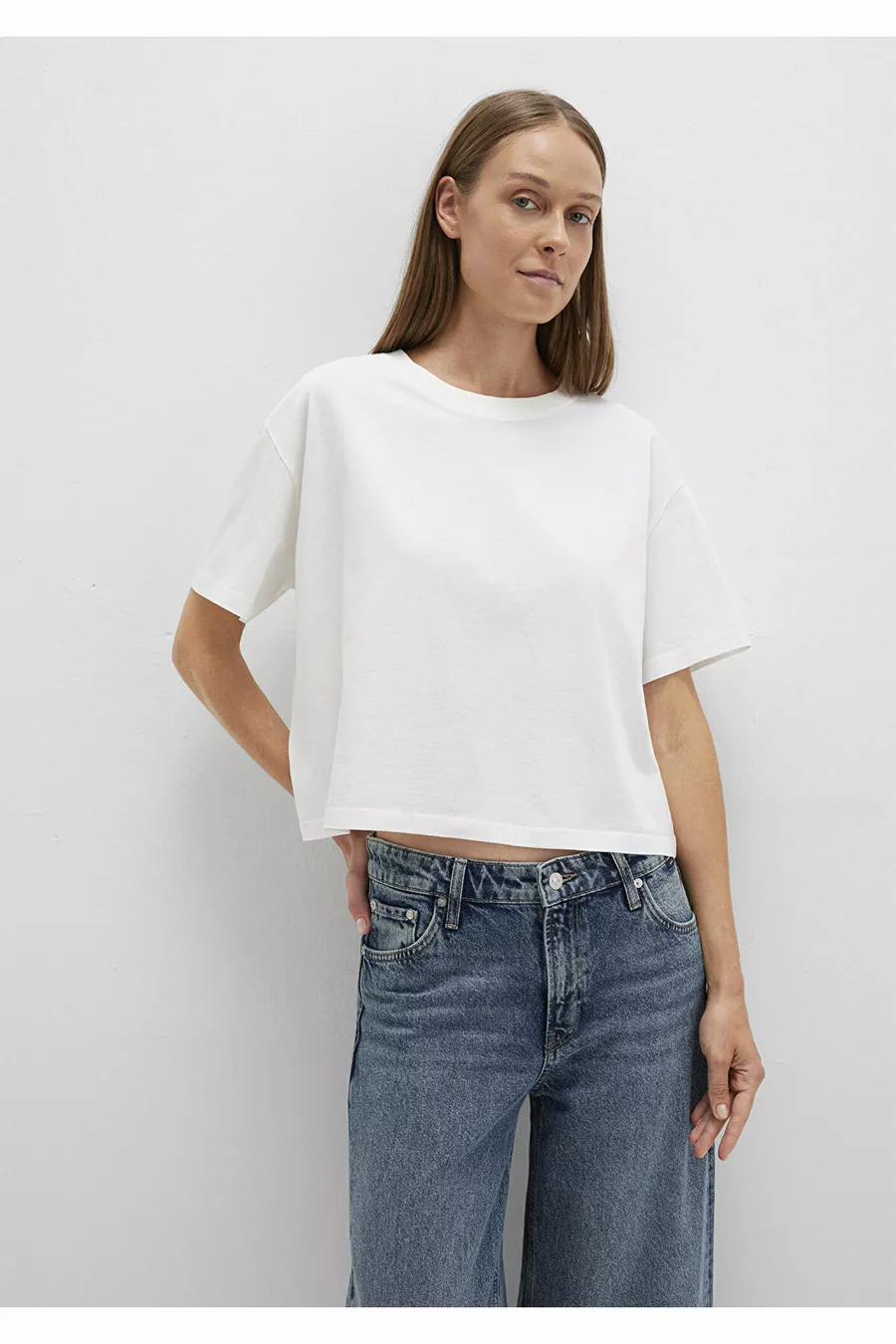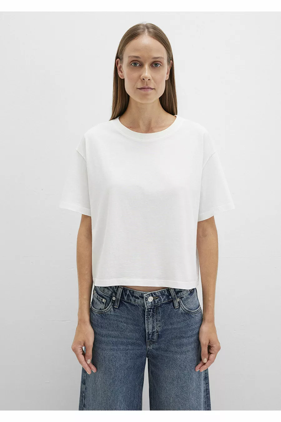 Weißes Basic-T-Shirt mit Rundhalsausschnitt in Boxy Fit