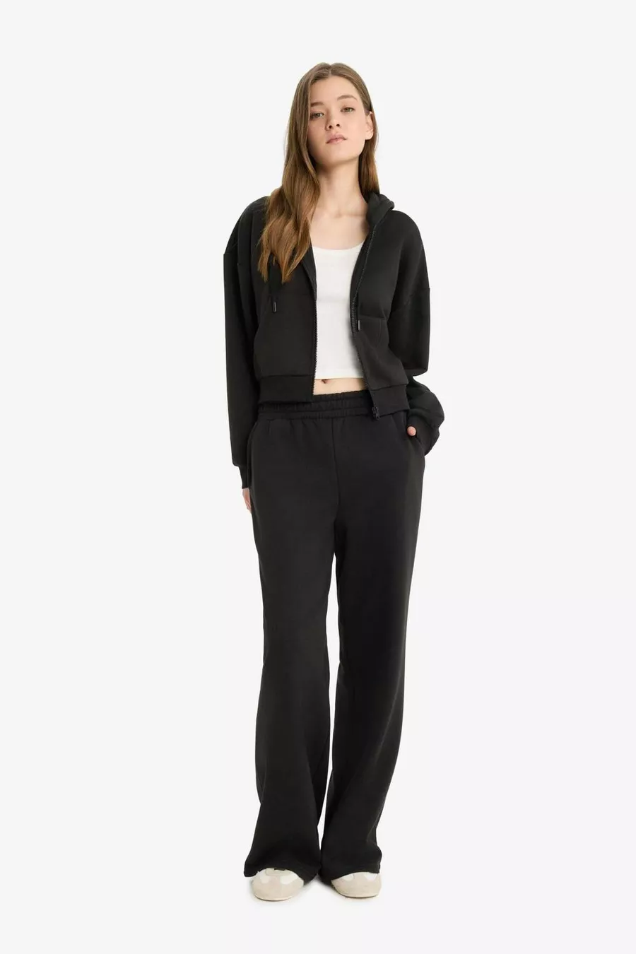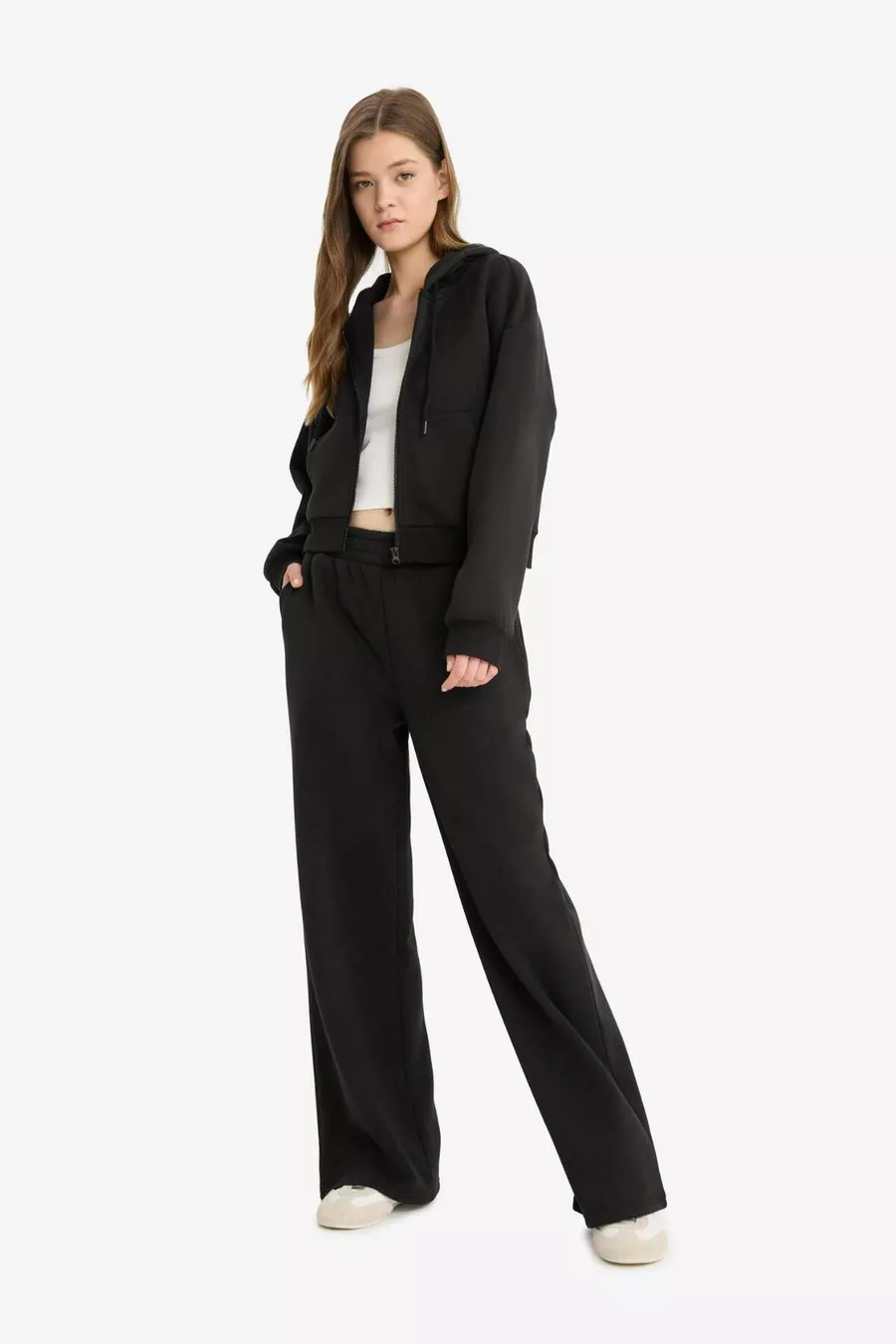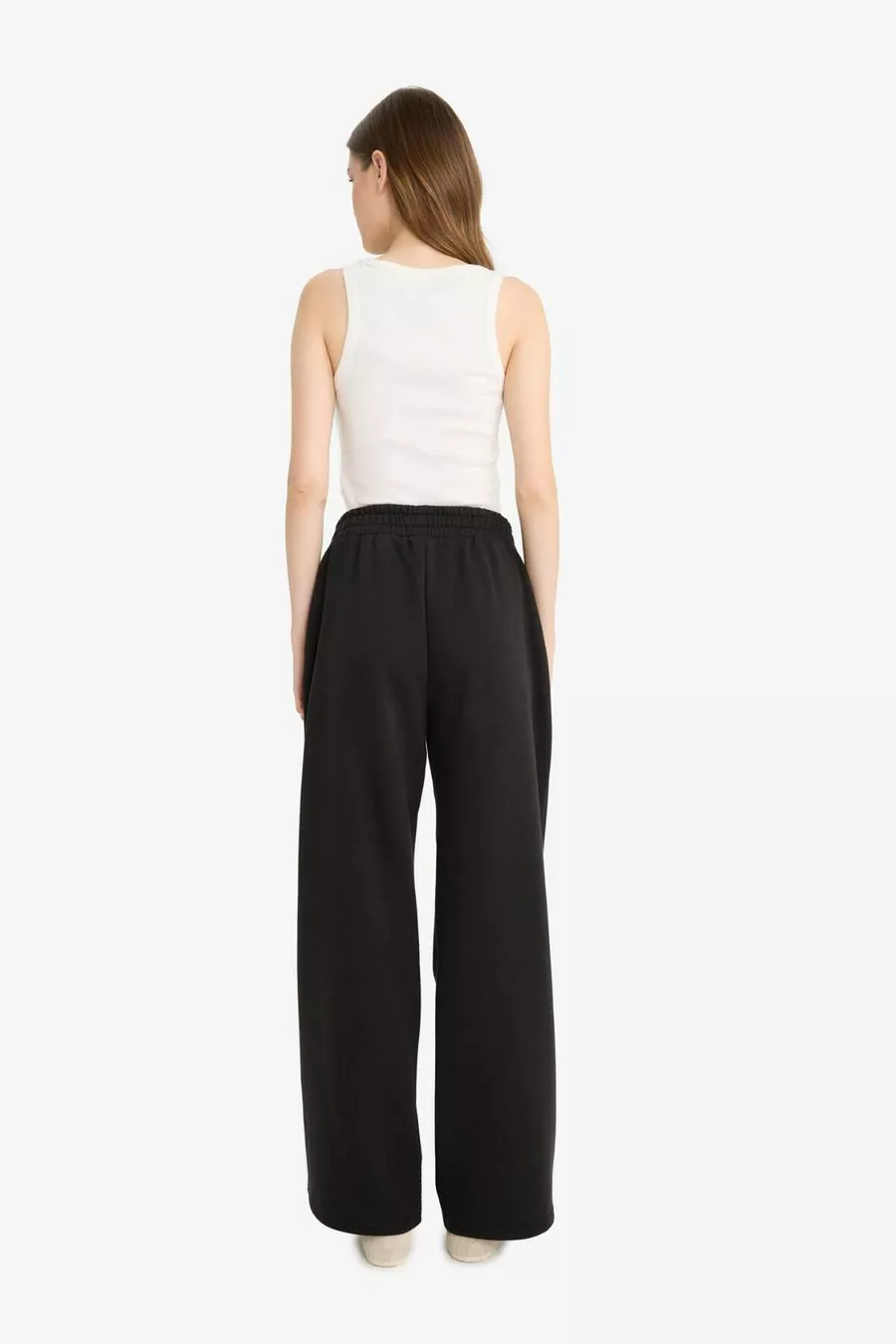 Weite Hose mit elastischem Bund, Kordelzug, Taschen, weitem Bein, Basic, einfarbige Jogginghose WN