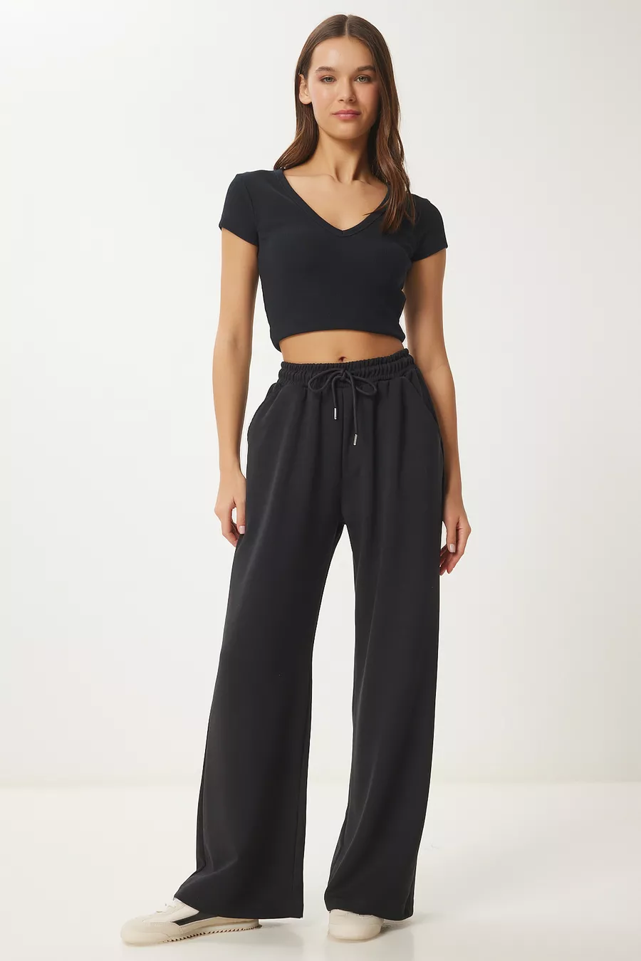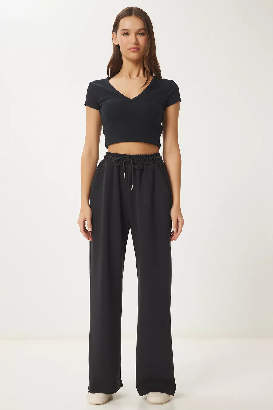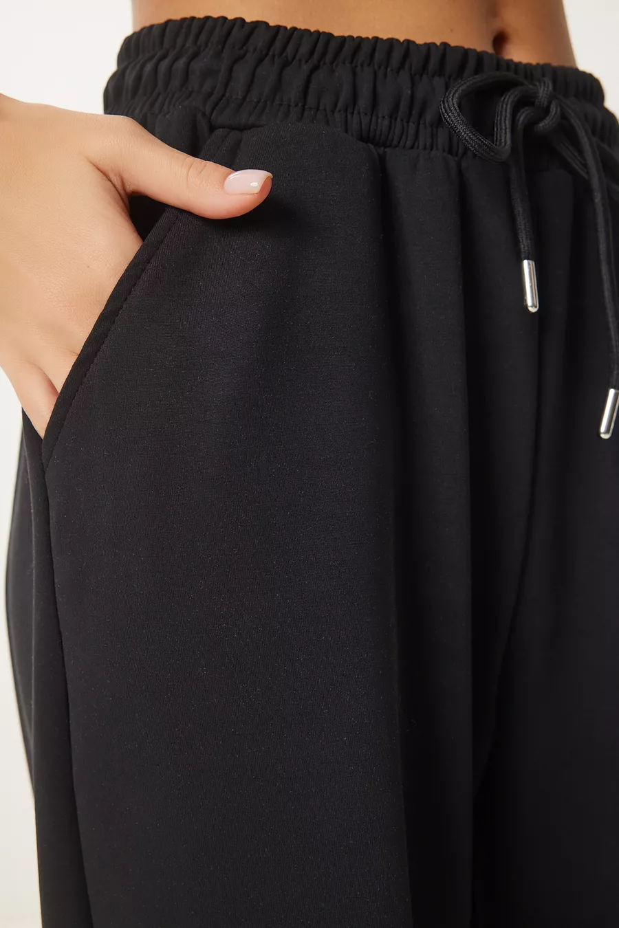 Schnitt: Locker Hosenbein-Typ: Weites Bein Hosenbein-Länge: Lang Material: Elasthan Farbe: Schwarz Taille: Normale Taille Tasche: Doppelte Tasche Muster: Uni Produktdetails: Hosenbein Produkttyp: Bedruckt Packungsinhalt: Einzelstück Größe: Standard Anlass: Freizeit/Täglich Silhouette: Locker Stoffart: Gestrickt Zusätzliches Merkmal: Kein zusätzliches Merkmal Webart: Polyester-Zweifaden Nachhaltigkeitsdetails: Nein Materialbestandteil: 50% Modal, 45% Polyester, 5% Elasthan Waschanleitung: Maschinell bei 30° waschbar. Trockner nicht empfohlen. Bleichmittel nicht empfohlen. Bügeln auf links und bei niedriger Temperatur empfohlen. Saison: Alle Jahreszeiten Herkunft: TR