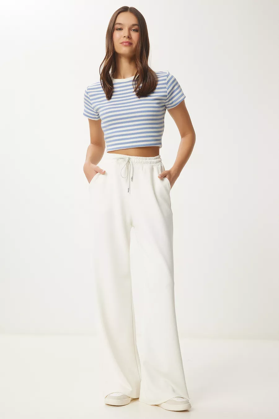 Schnitt: Locker Hosenbein-Typ: Weites Bein Hosenbein-Länge: Lang Material: Elasthan Farbe: Ecru Bund: Normale Taille Taschen: Doppelte Taschen Muster: Uni Produktdetails: Hosenbein Produkttyp: Bedruckt Packungsinhalt: Einzelstück Größe: Standard Anlass: Casual/Alltag Silhouette: Locker Stoffart: Strick Zusätzliche Eigenschaften: Keine zusätzlichen Eigenschaften Webart: Polyester Doppelfaden Nachhaltigkeitsdetails: Nein Materialzusammensetzung: 50% Modal, 45% Polyester, 5% Elasthan Waschanleitung: Maschinell bei 30° waschbar. Trockner nicht empfohlen. Bleichmittel nicht verwenden. Bügeln auf links und bei niedriger Temperatur empfohlen. Saison: Alle Jahreszeiten Herkunft: TR
