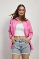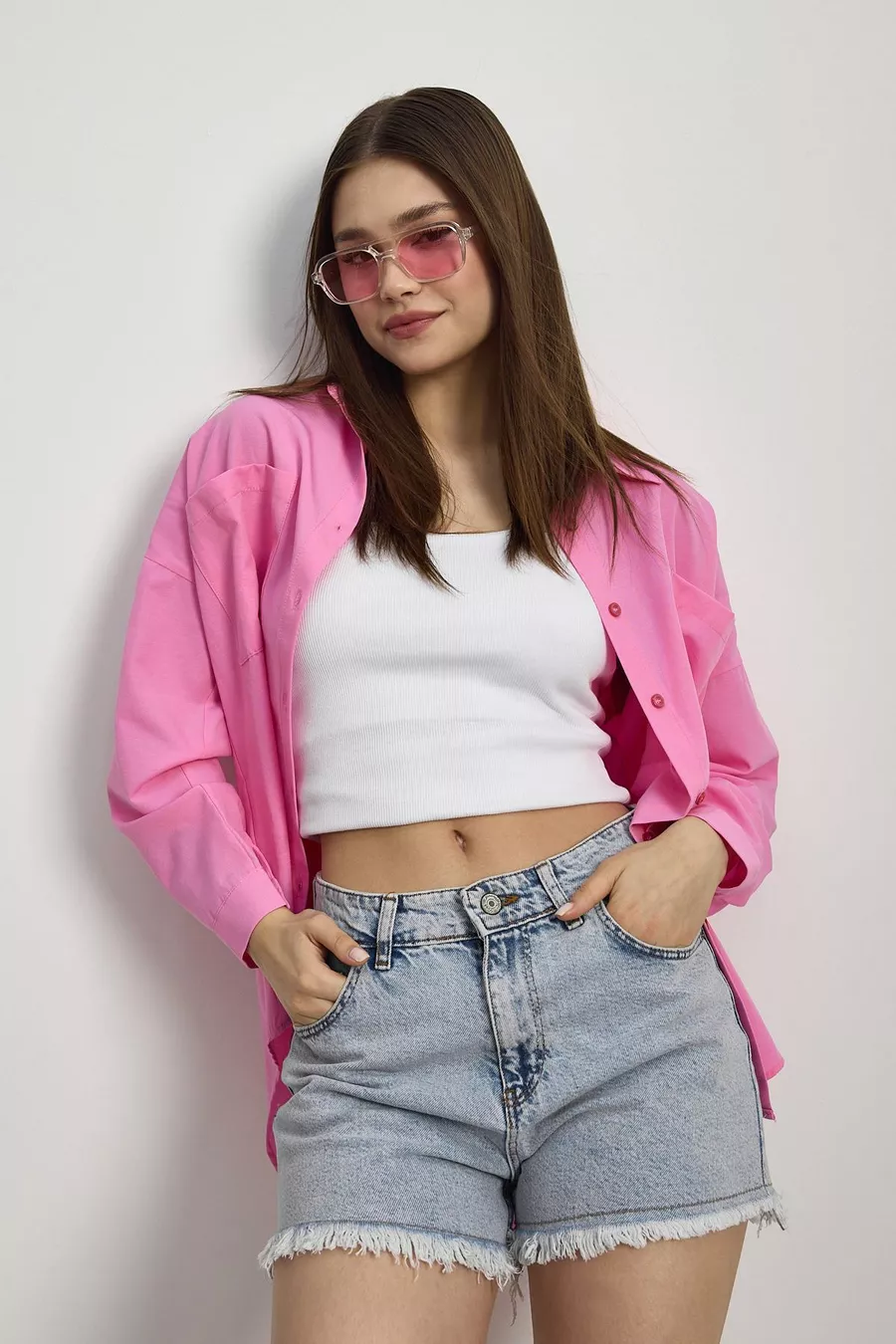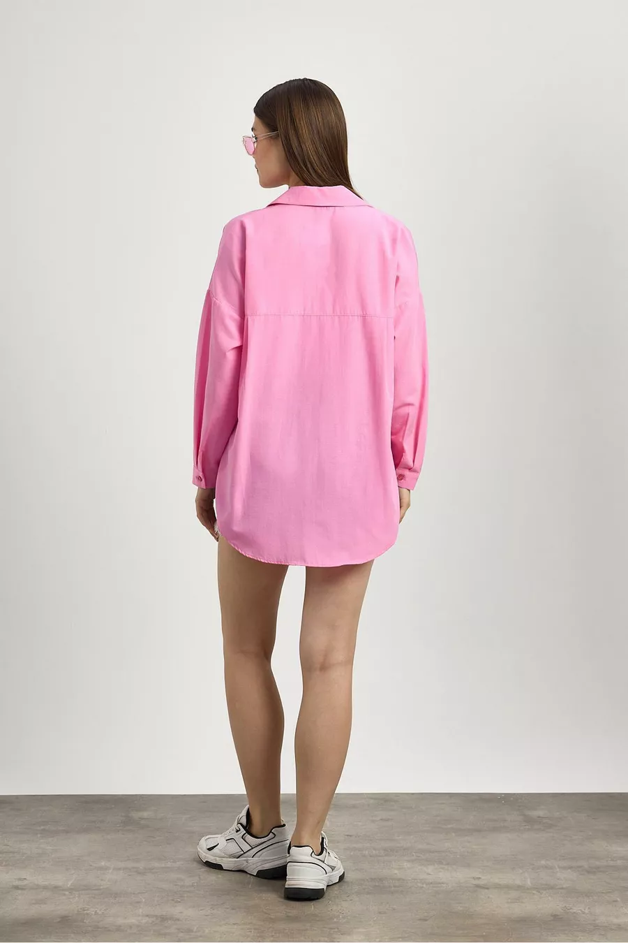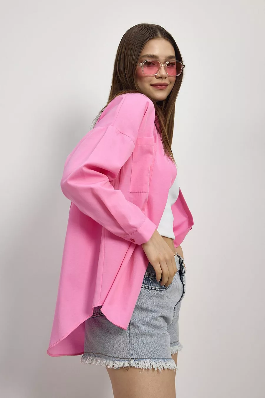 Zuckerrosa Oversize Lange Basic-Hemd mit Doppelten Taschen - a