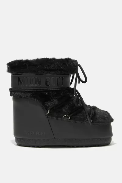 |Wintfest Women's Black In-Fur Non-Slip Thermal Sole Velcro Boots Casual Rain & Snow Boots
