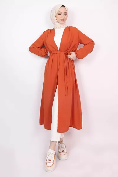 Waist Detailed Mevlana Abaya Rubber Sleeve Summer Aerobin