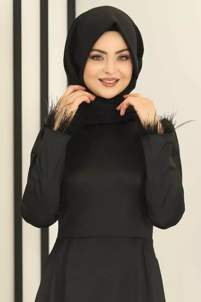 Black Alya Plus Size Stylish Stone Embroidered Mother Evening Dress