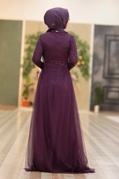 Mihrimah Janjan Luxury Hijab Evening Dress - Navy Blue