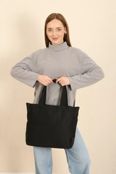 Düz Siyah Günlük Seyahat Kurs Sırt Çantası Plain Black Daily Travel Course Backpack