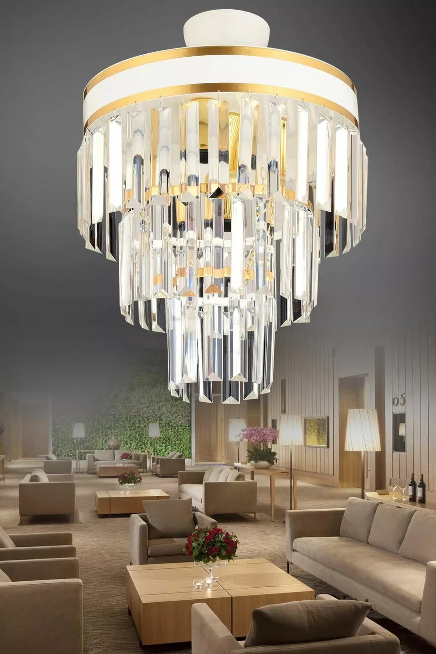 Çağla 3-Tier White Chandelier with Gold Gilding