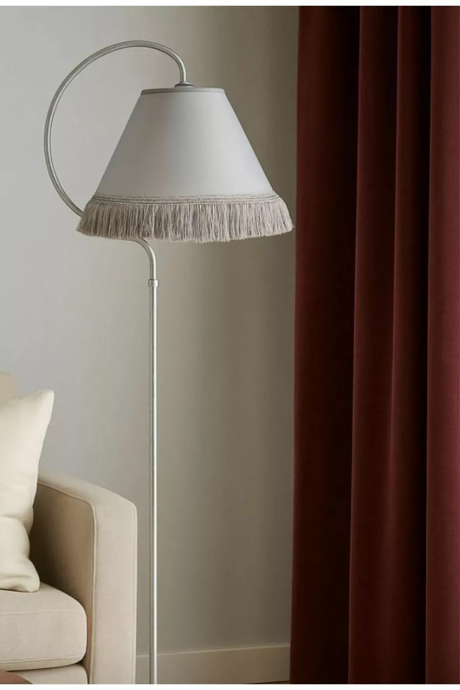Çise Floor Lamp Ellipse Black Silver Patina Gray with Tassels Single-Pedestal Living Room Lamp
