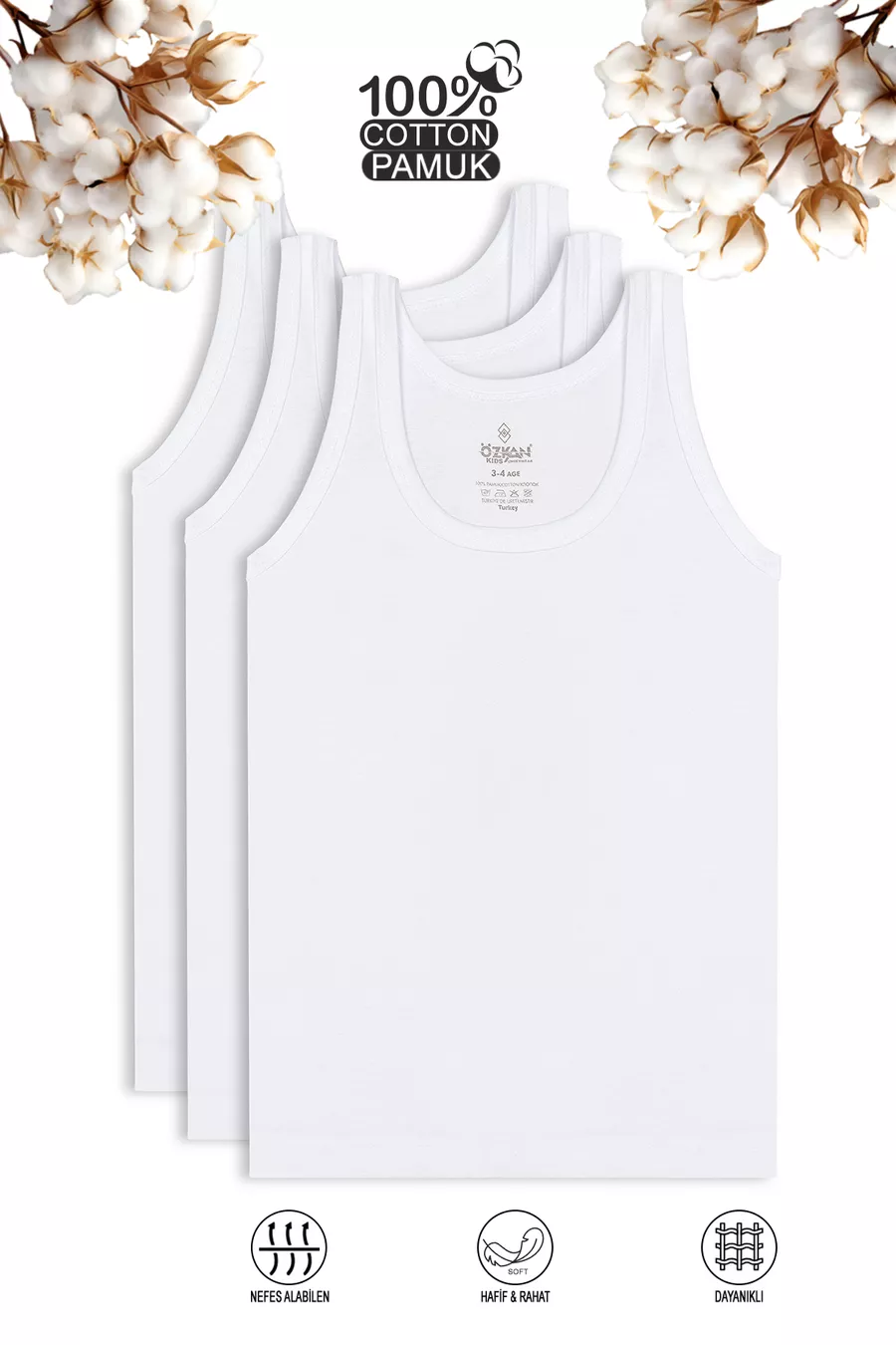 Özkan 3-Pack Boys' Tank Tops, Waiter Size, % Cotton Suprem Fabric
