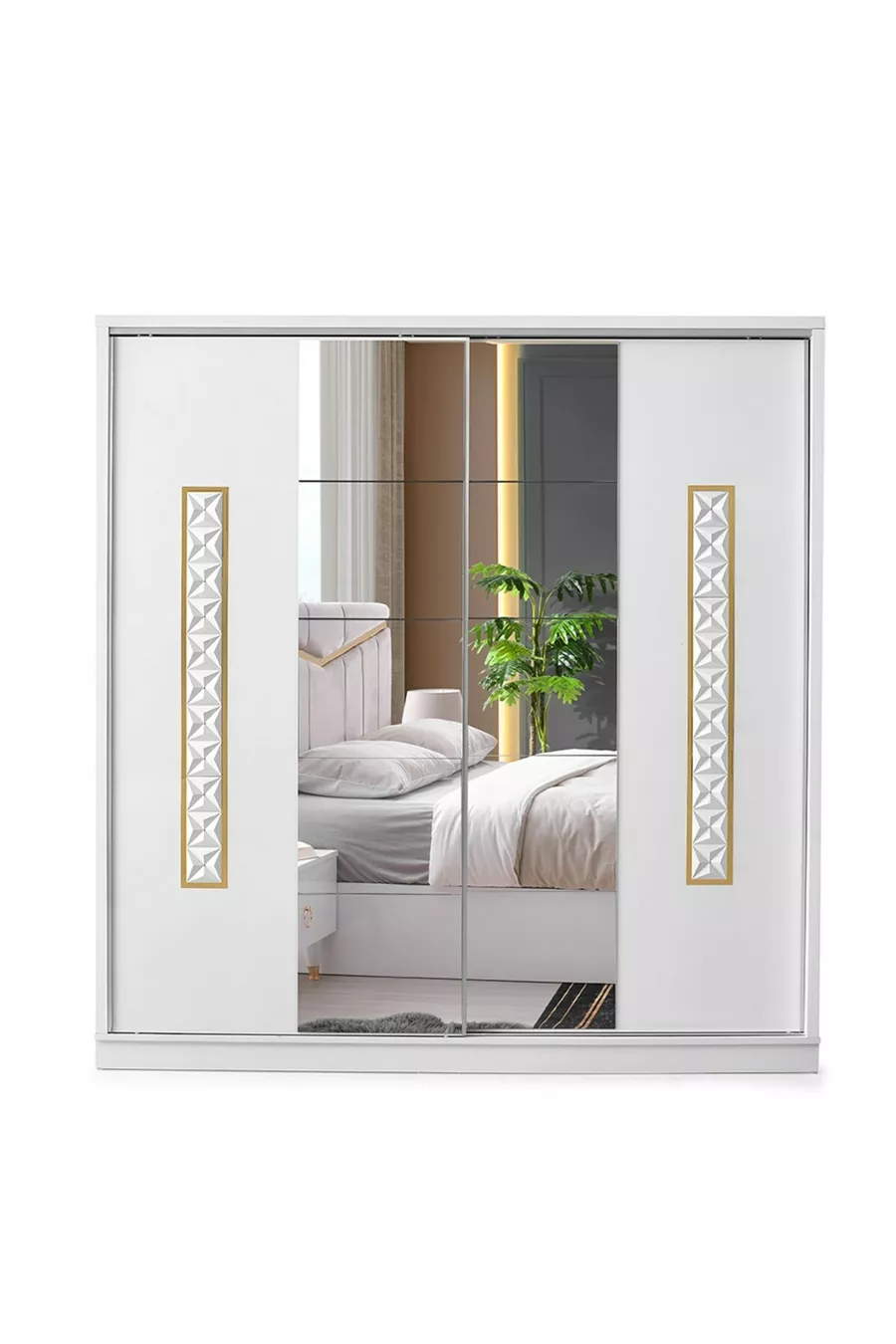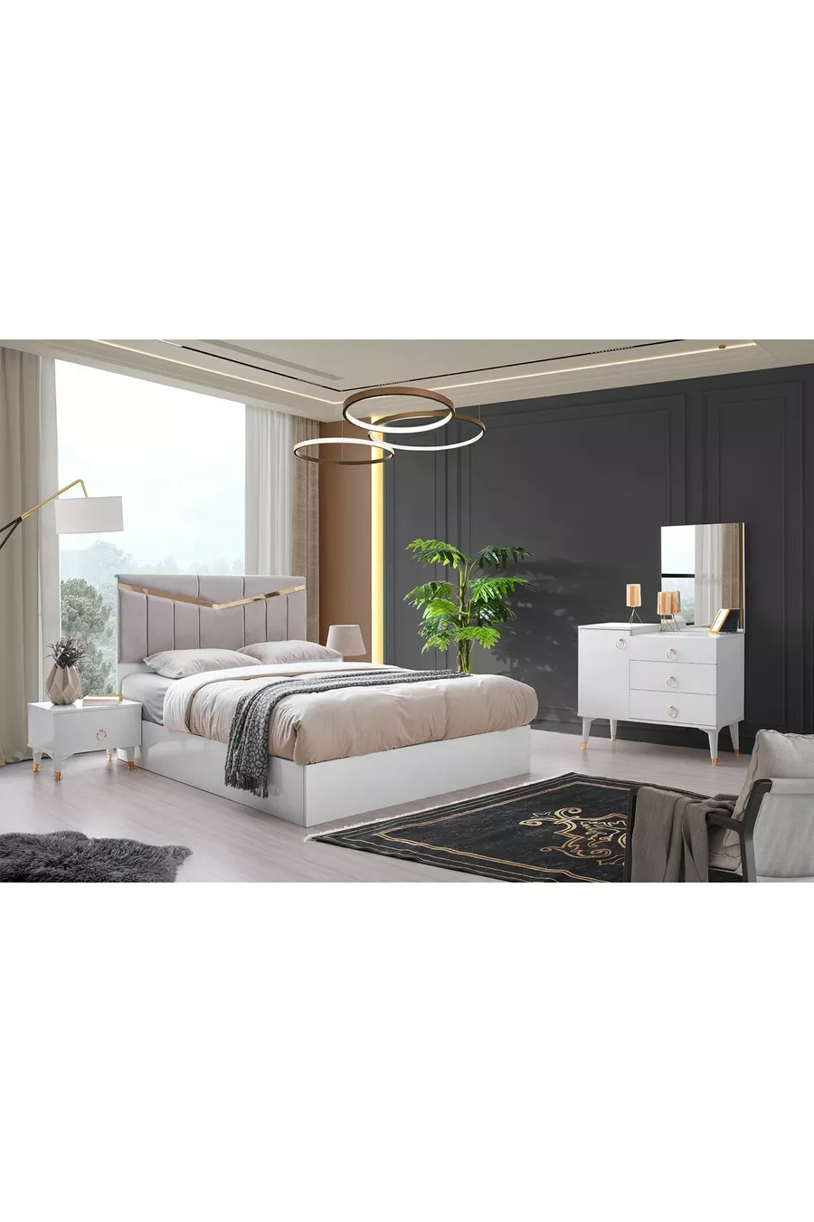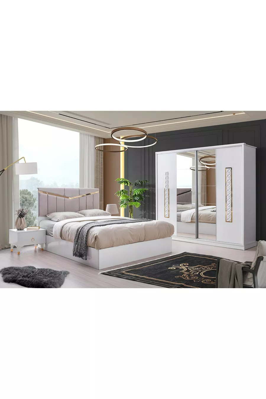 Set Contents: Wardrobe + 2 Nightstands + Dresser + Bed Headboard