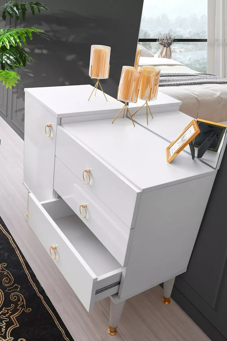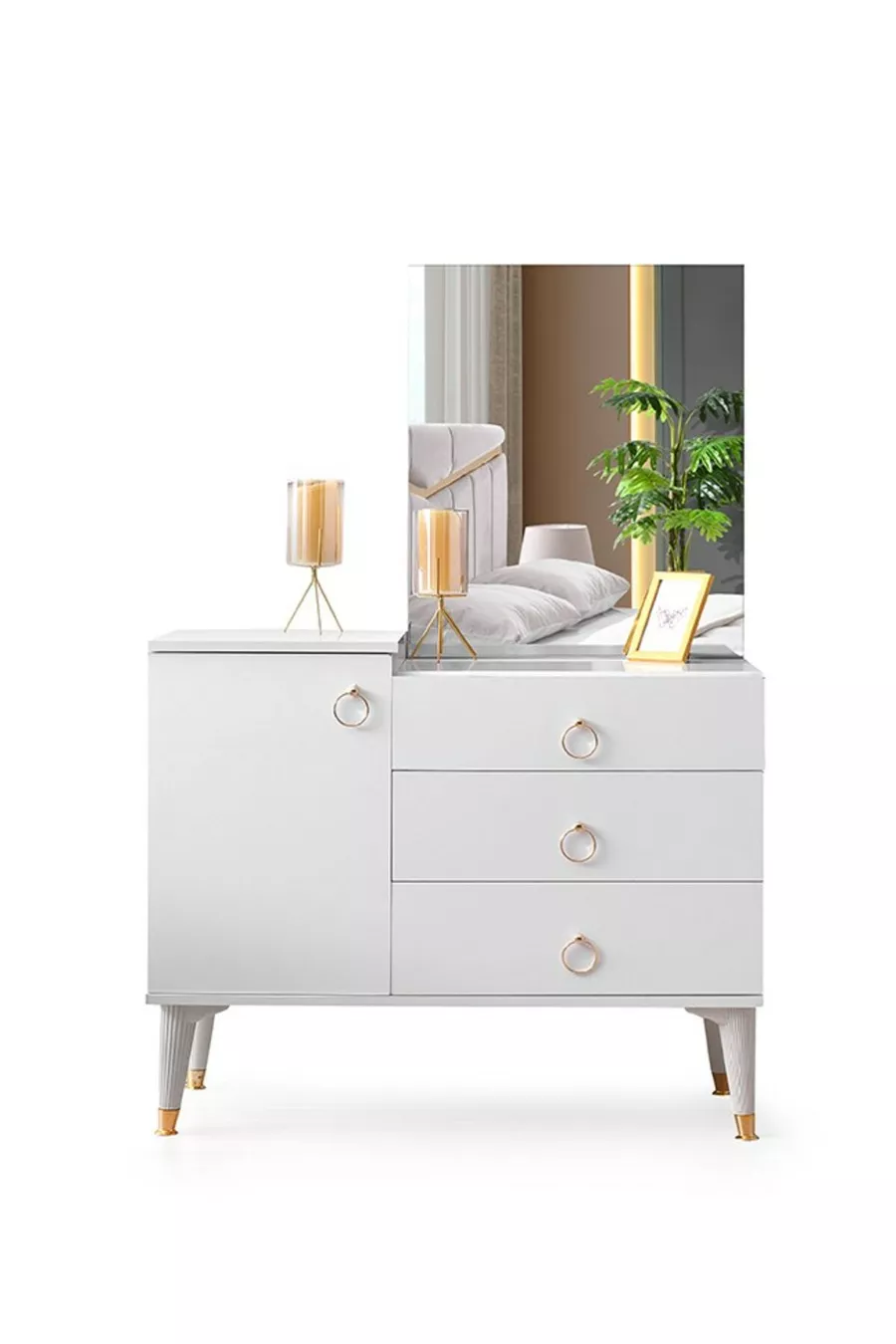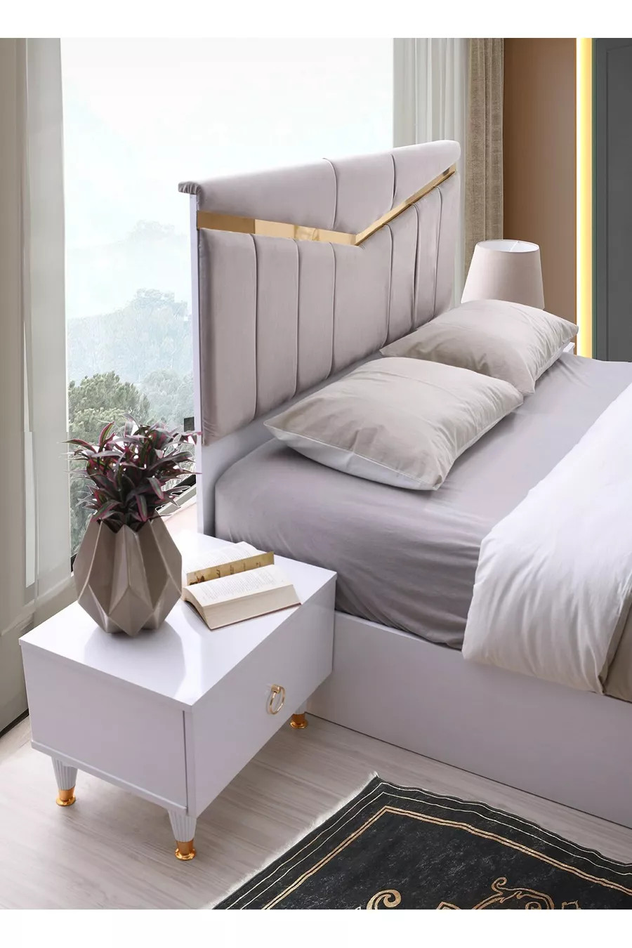 Set Contents: Wardrobe + 2 Nightstands + Dresser + Bed Headboard