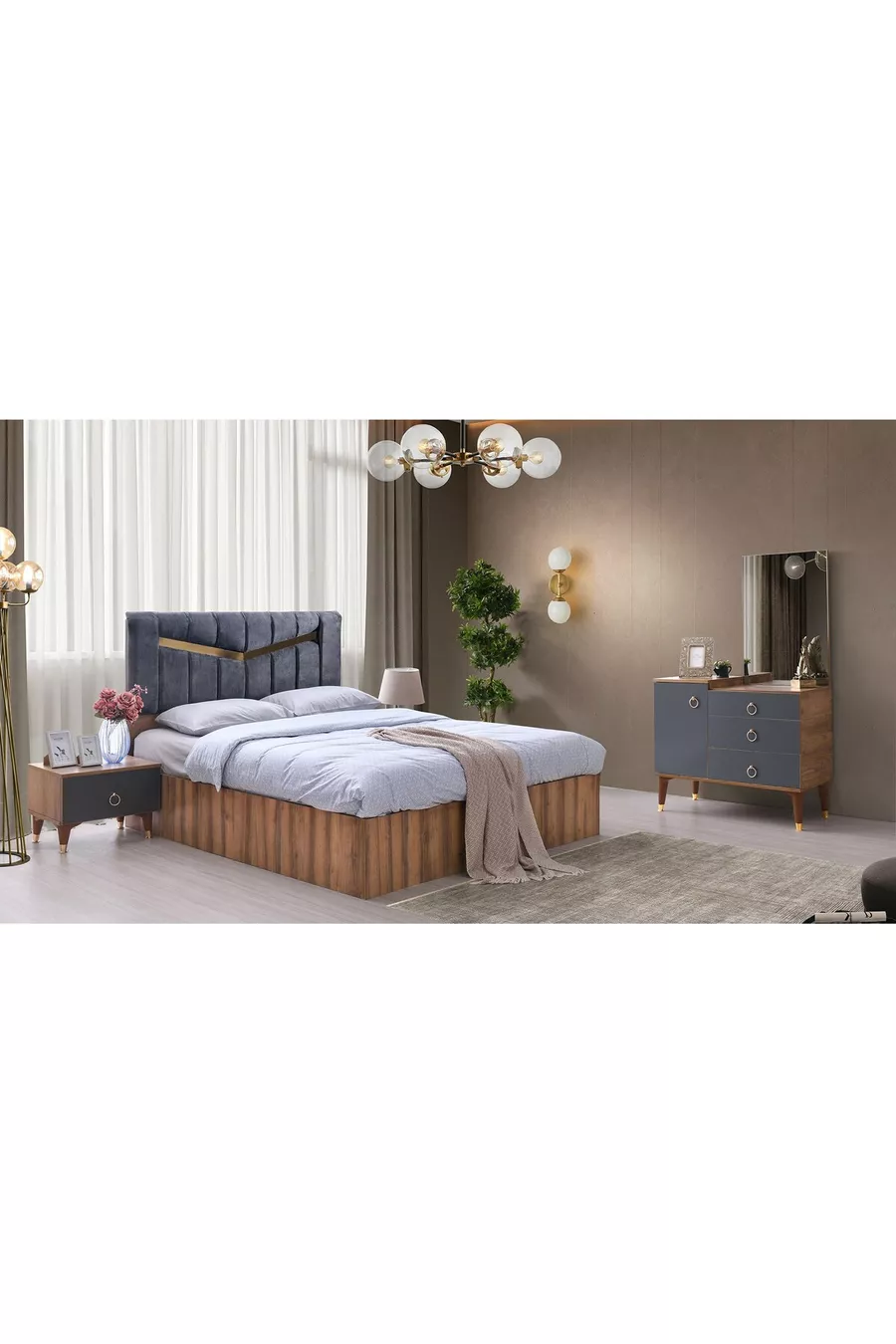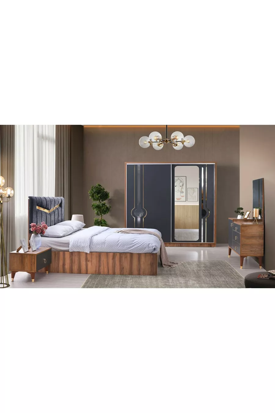 Set Contents: Wardrobe + 2 Nightstands + Dresser + Headboard