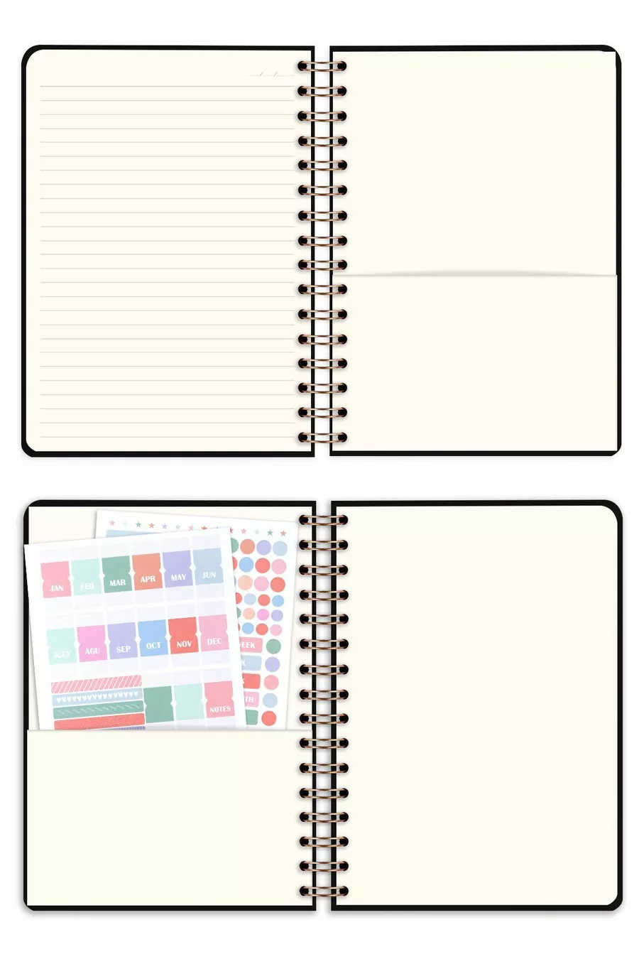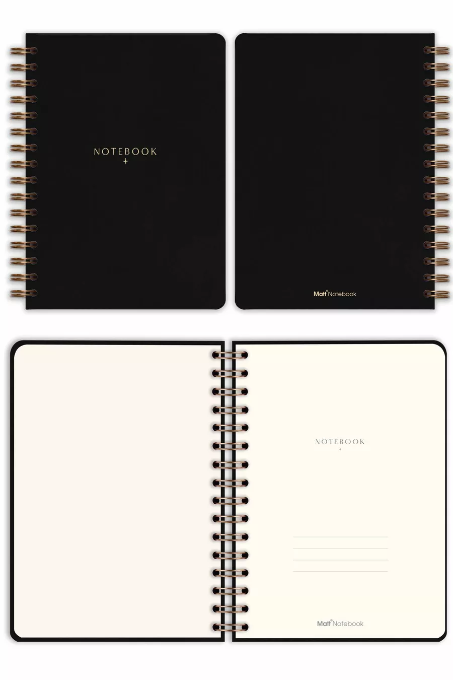Cover Type: Hard Wire Type: Spiral Size: Medium Color: Black Notebook Type: Notebook Page Type: Lined Paper Size: A5 Number of Pages: 104 Sheets Origin: TR