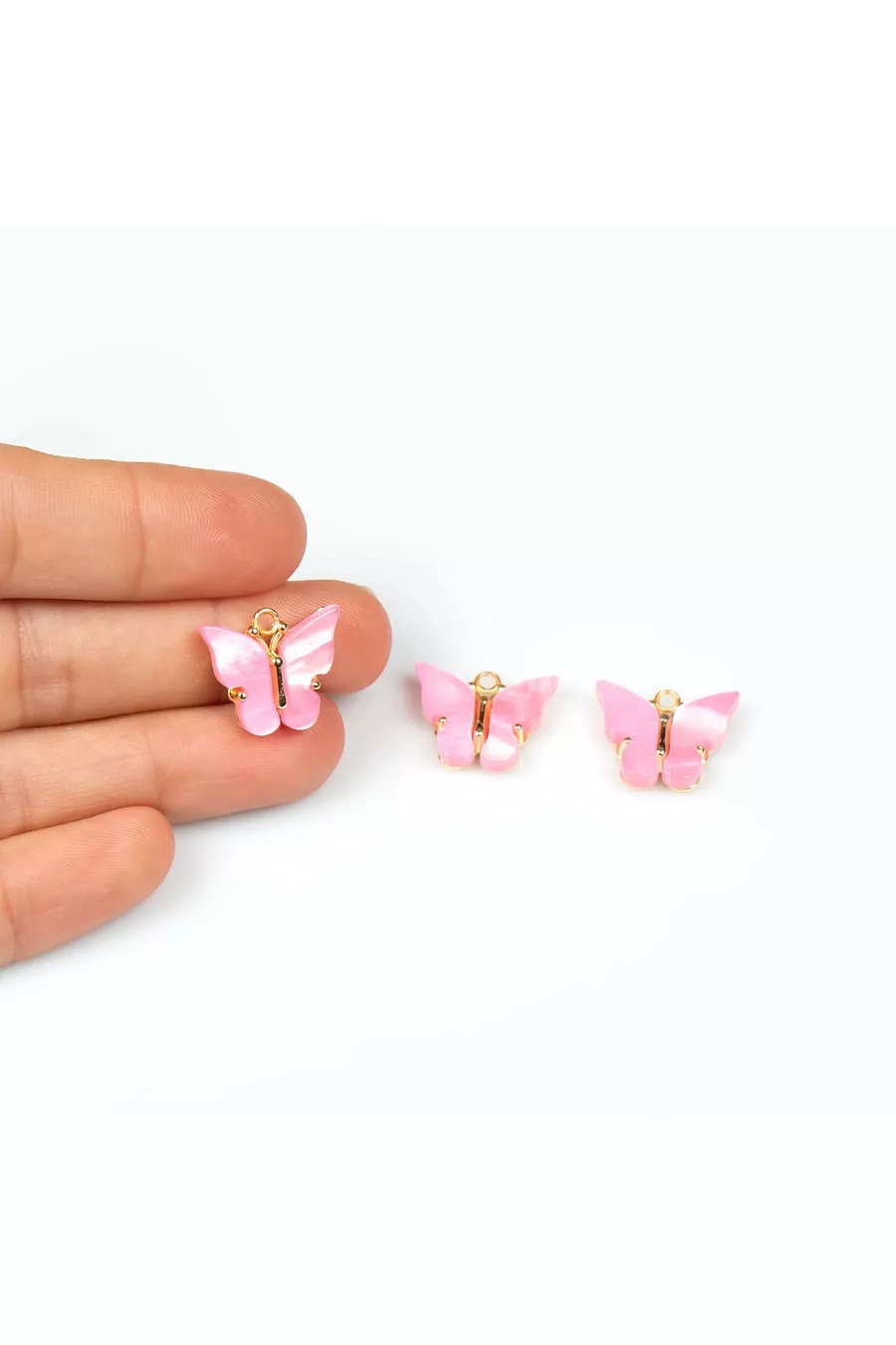 1 Piece - Mm Butterfly Jewelry Finding, Gold-Plated Jewelry Finding with Pink Stone, 1st Quality (does not tarnish)