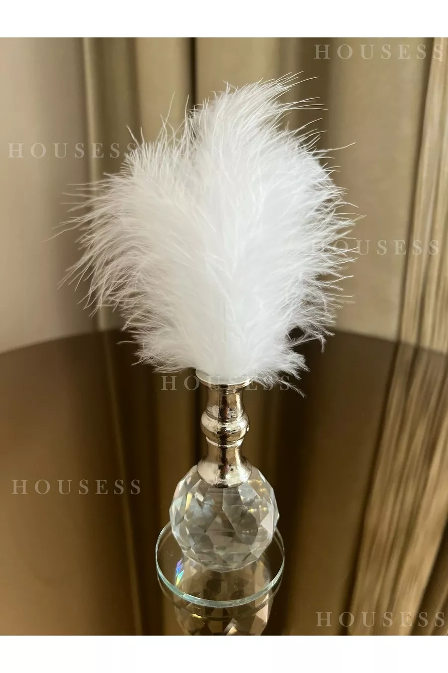 1 White Furry Silver Crystal Ball Plush Decorative Figurine