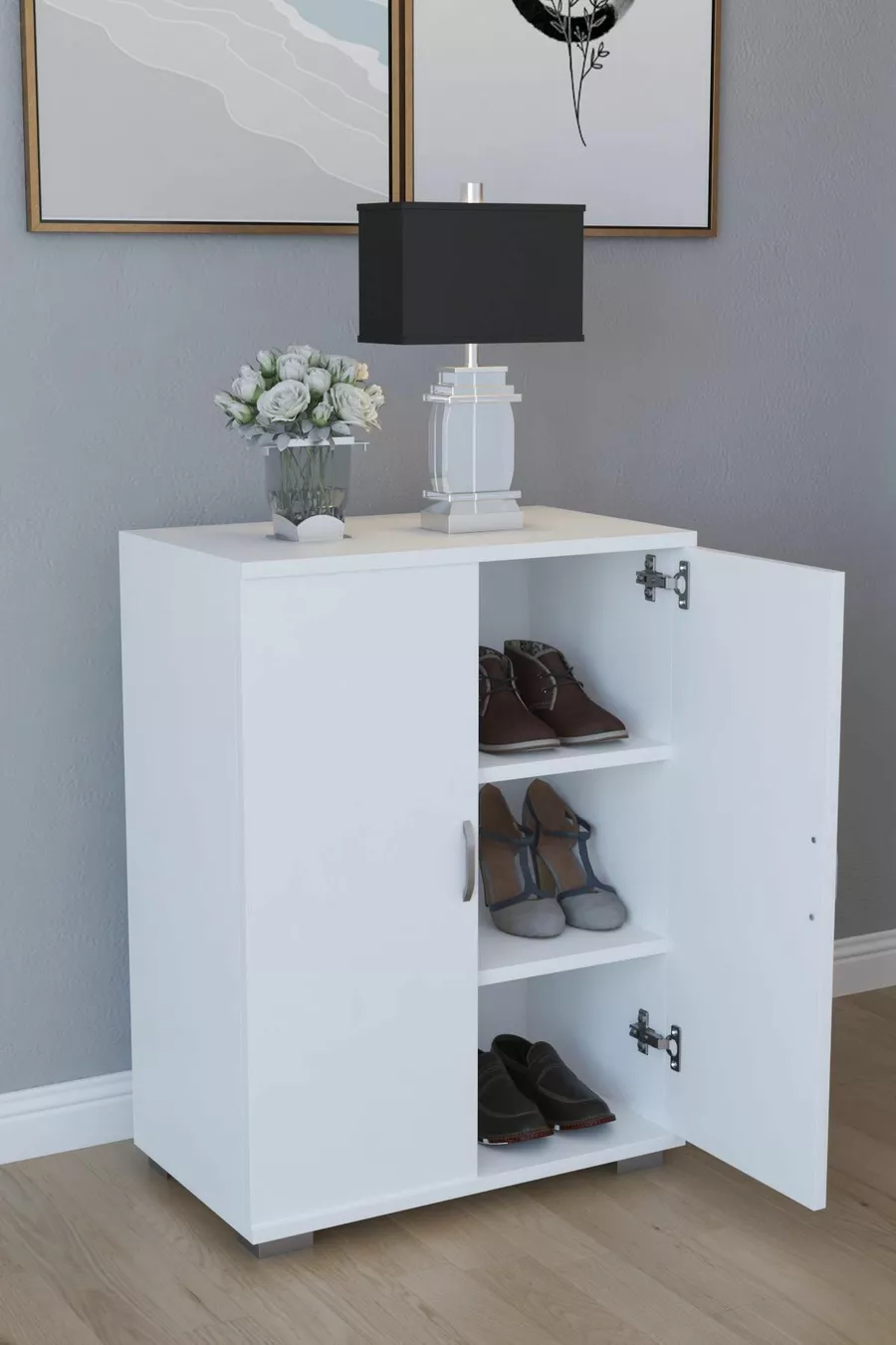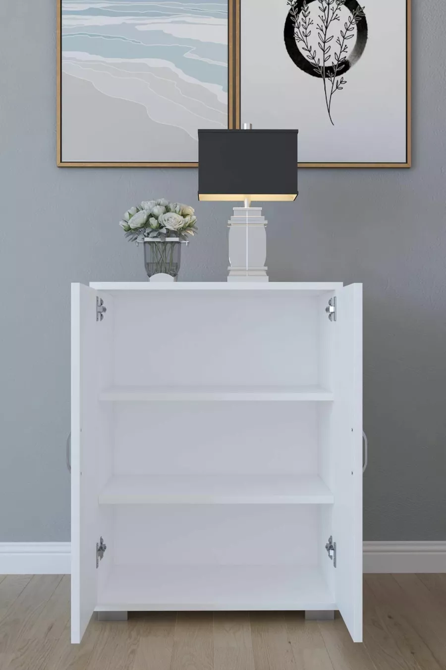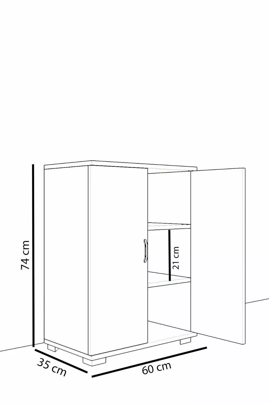 Material: Particleboard Color: White Number of Doors: 2 Height: 74 cm Width: 60 cm Depth: 35 cm Warranty Period: 2 Years Style: Scandinavian Theme / Style: Modern Feature: With Doors