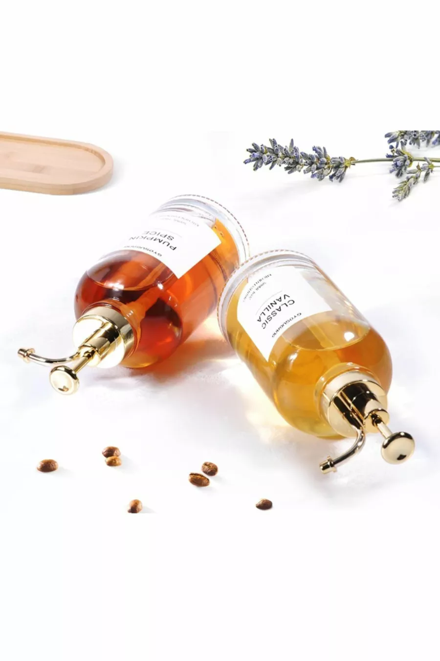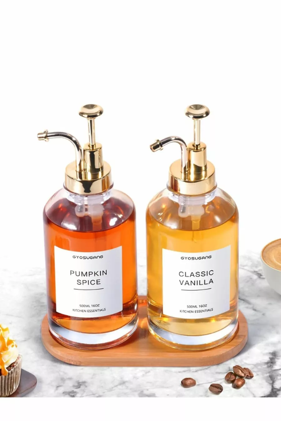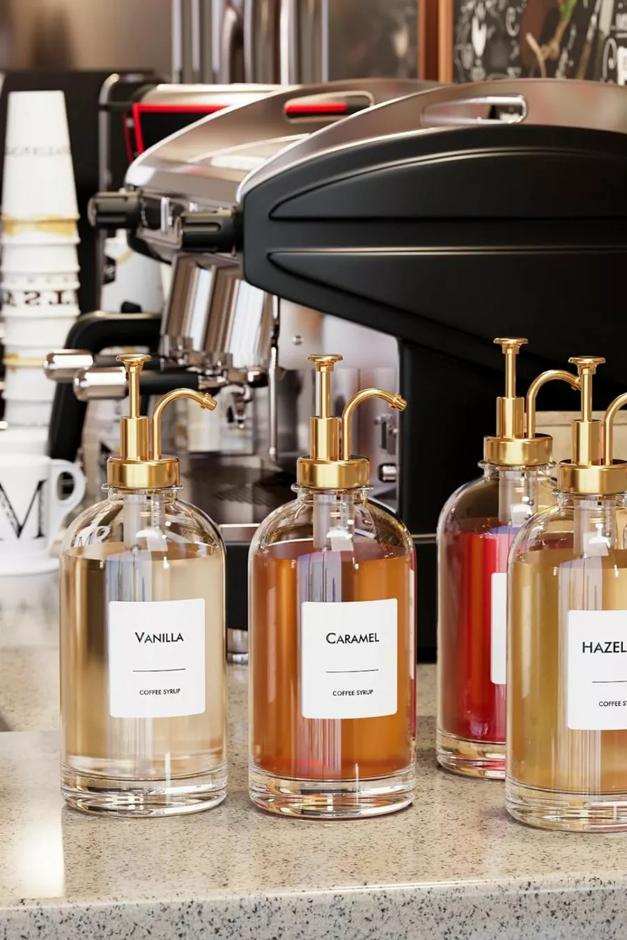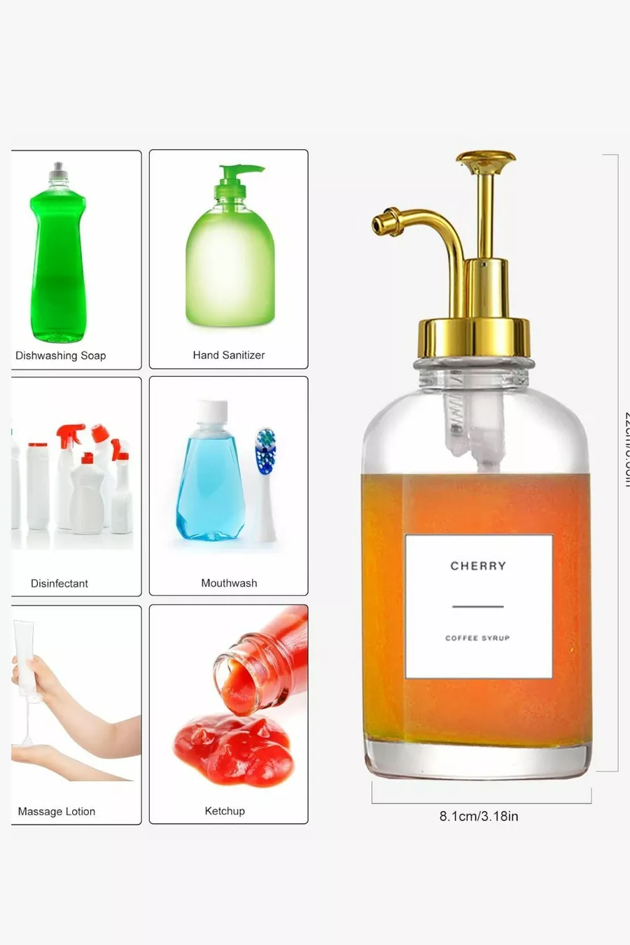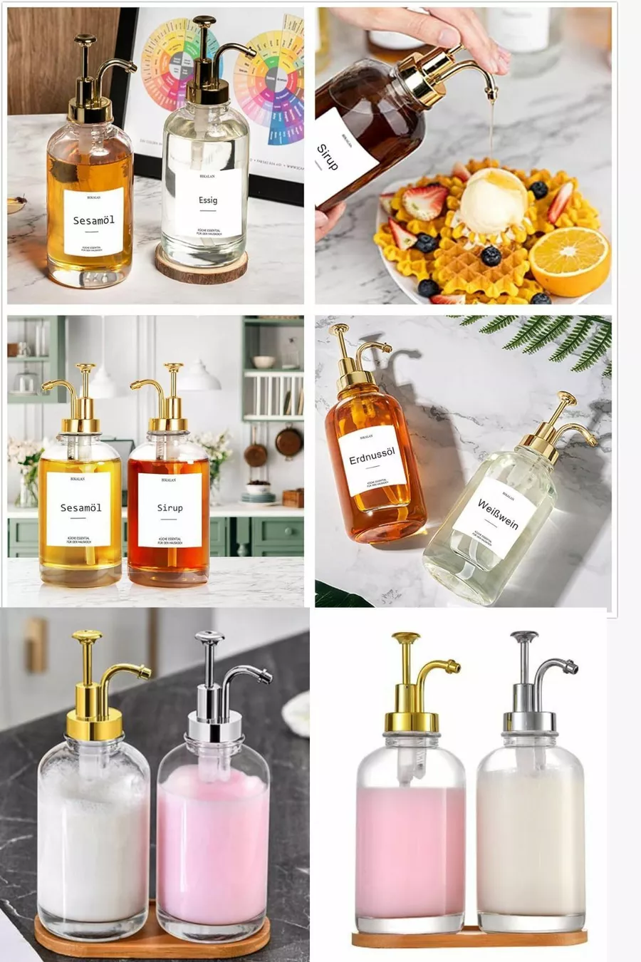 2 L Crystal Glass, Oil, Coffee Dispenser, Syrup Bottle, 9 Different Labeled Gold ml