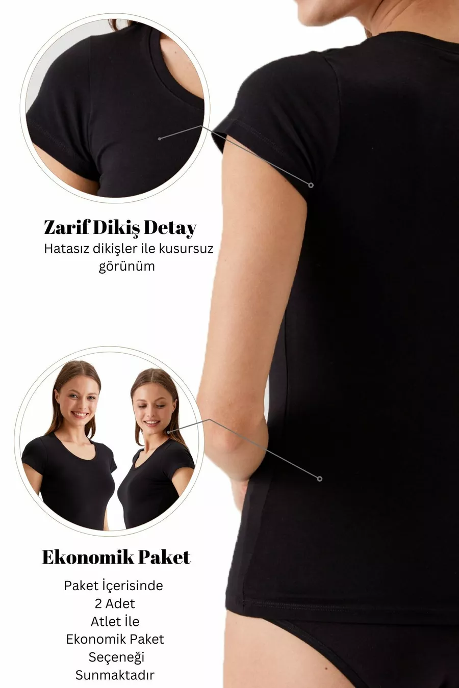 2-Piece Economic Pack Black-and-White Round Neck Short Sleeve Basic T-shirt - Tank Top