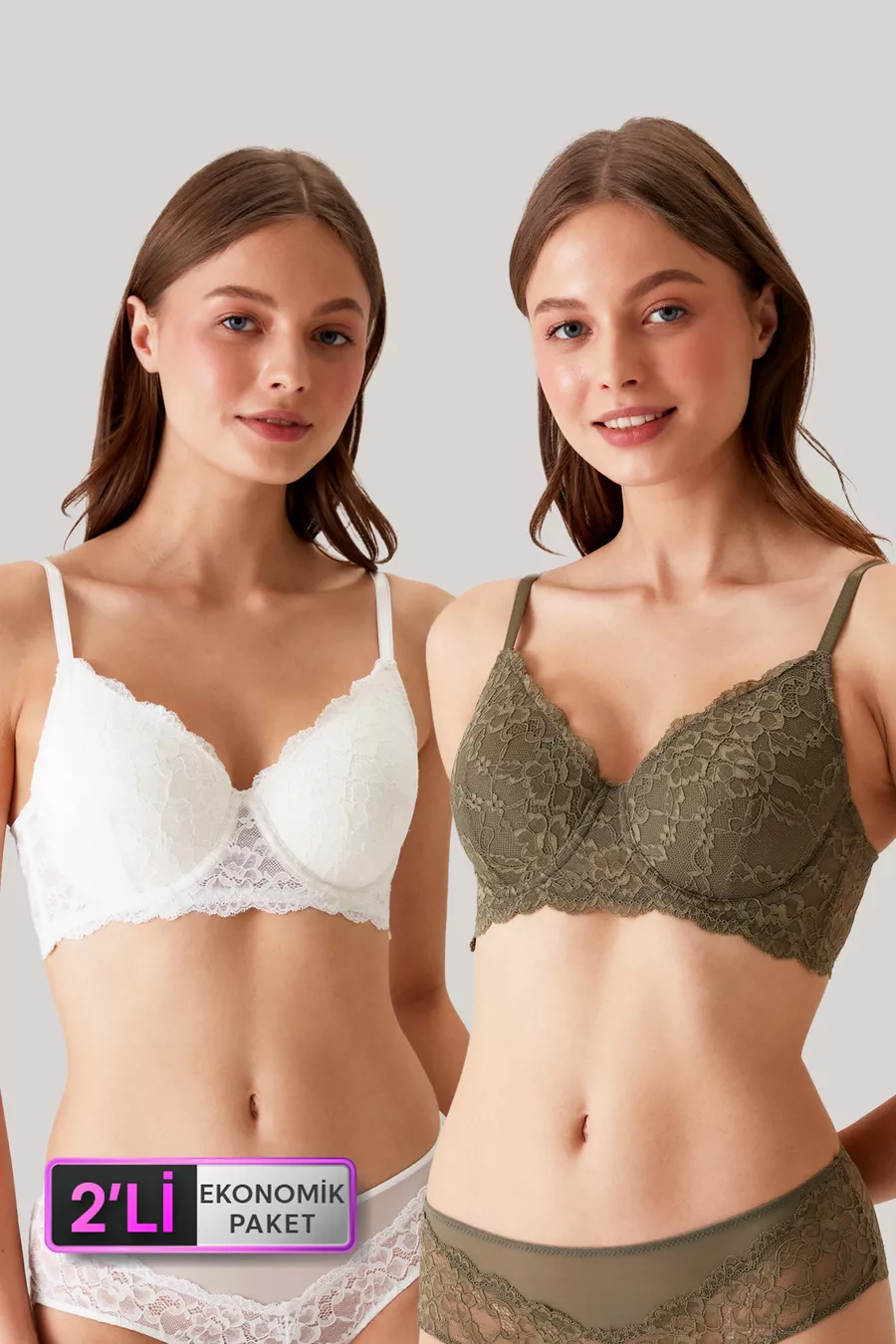 2-Piece Economic Package Ecru-b.olive -2 Barcelona Shaping Lace Bra Set with D Cup Option