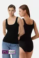 2-Piece Economic Pack Black Square Neck Thick-Strap Basic Cotton Tank Top Set