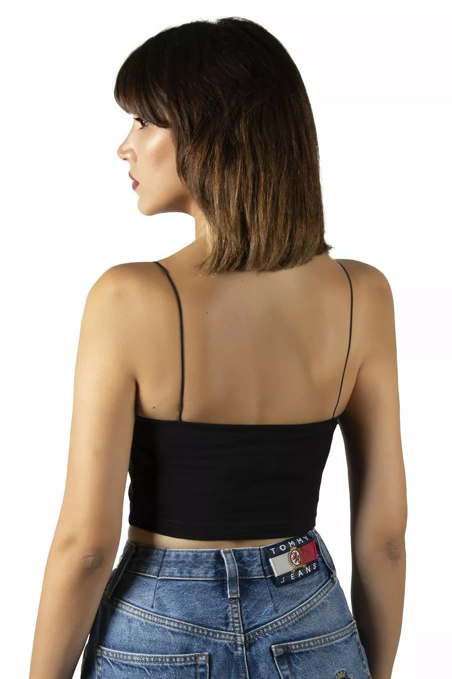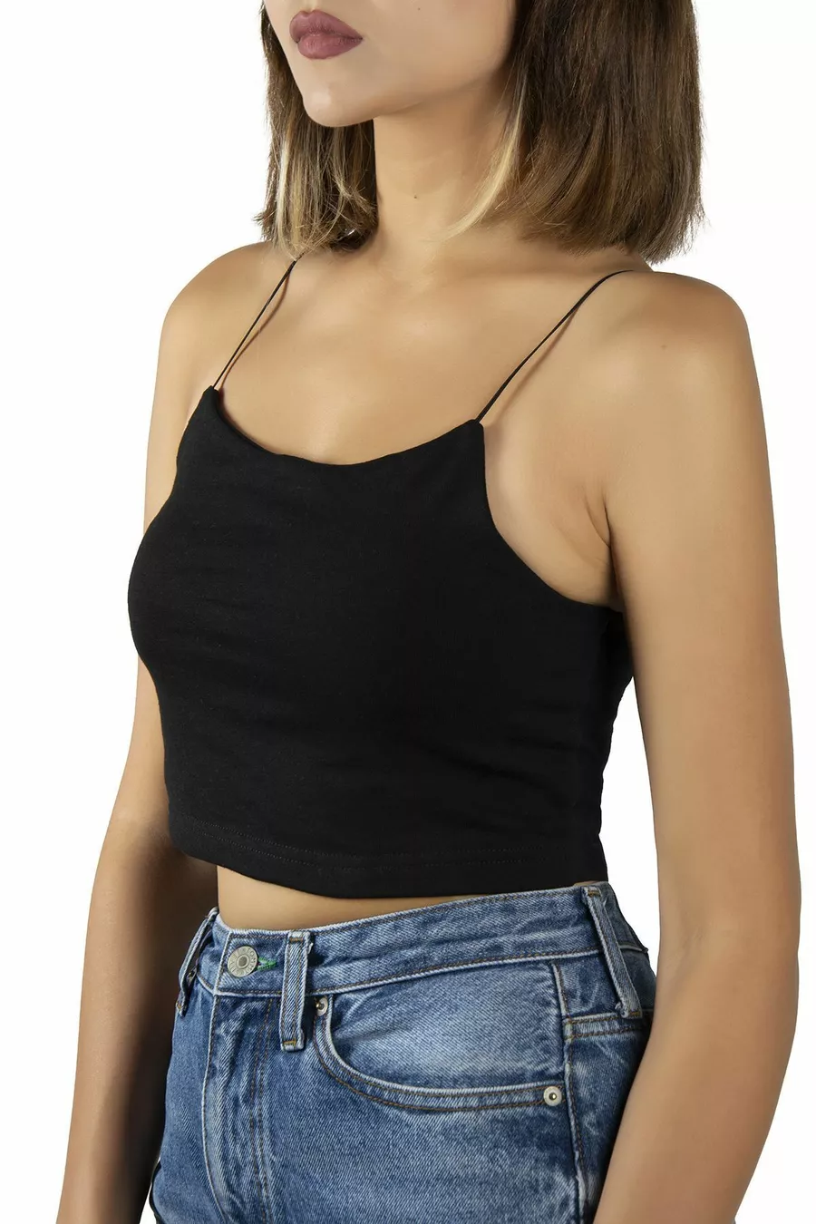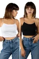 2-Piece Pack Women's Black and White Cotton Crop Top Cami Tank Top