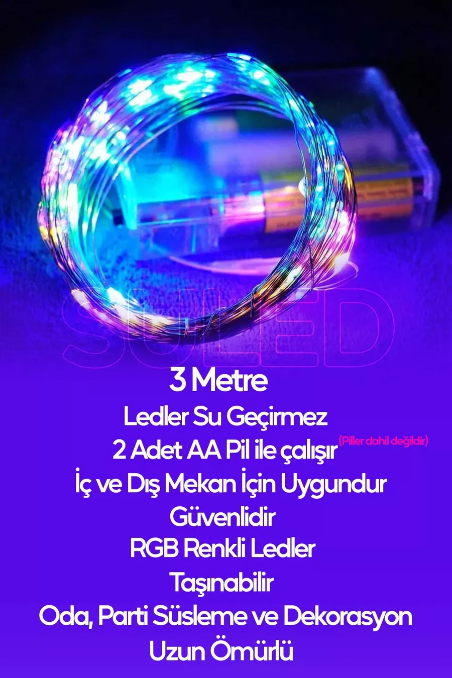 3 Meter Battery-Powered RGB Fairy LED Thin Wire Decorative Light Colorful Decorative Curtain LED Garden Room Cafe Wall
