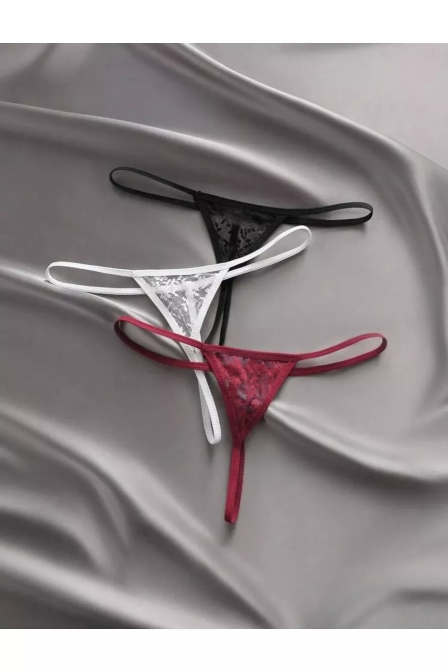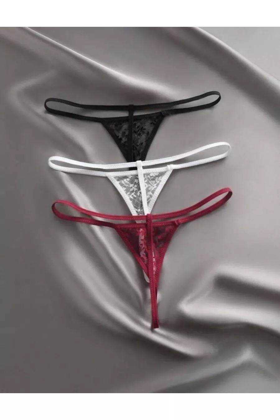 Material: Lace Color: Black Pattern: Plain Fit: String Collection: Lingerie Washing Instructions: Type 1 Fabric Type: Woven Waist: Regular Waist Occasion: Daily Additional Feature: Stretchy Sustainability Detail: No Package Contents: Set of 3 Product Detail: Piped Origin: TR