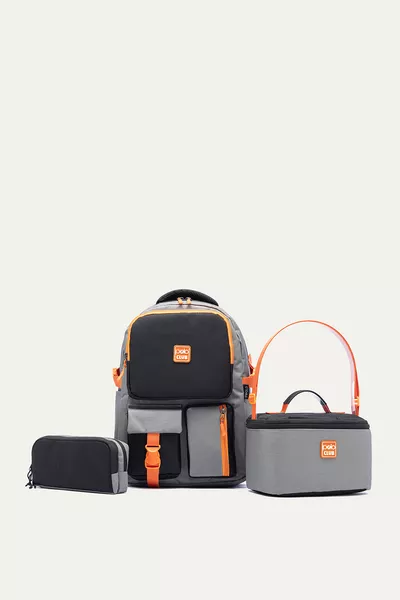 3-Piece Set Elementary School Backpack Multi-Compartment Orthopedic Backpack Black