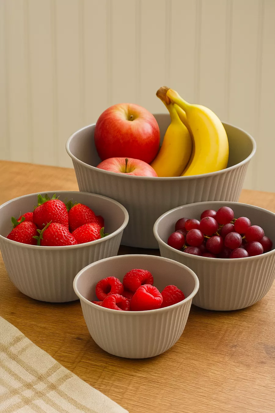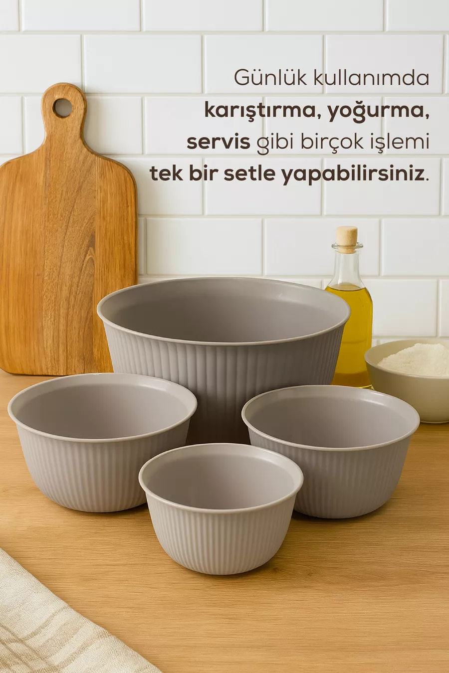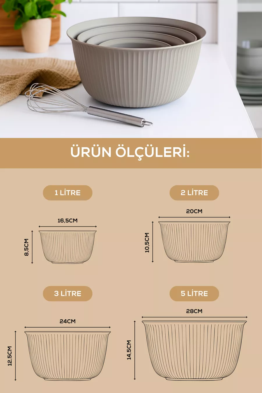 Number of Pieces: 4 Capacity: 75 L Product Type: Mixing Bowl Color: Beige Origin: TR Material: Plastic Care Instructions (Food Contact): Dishwasher safe.