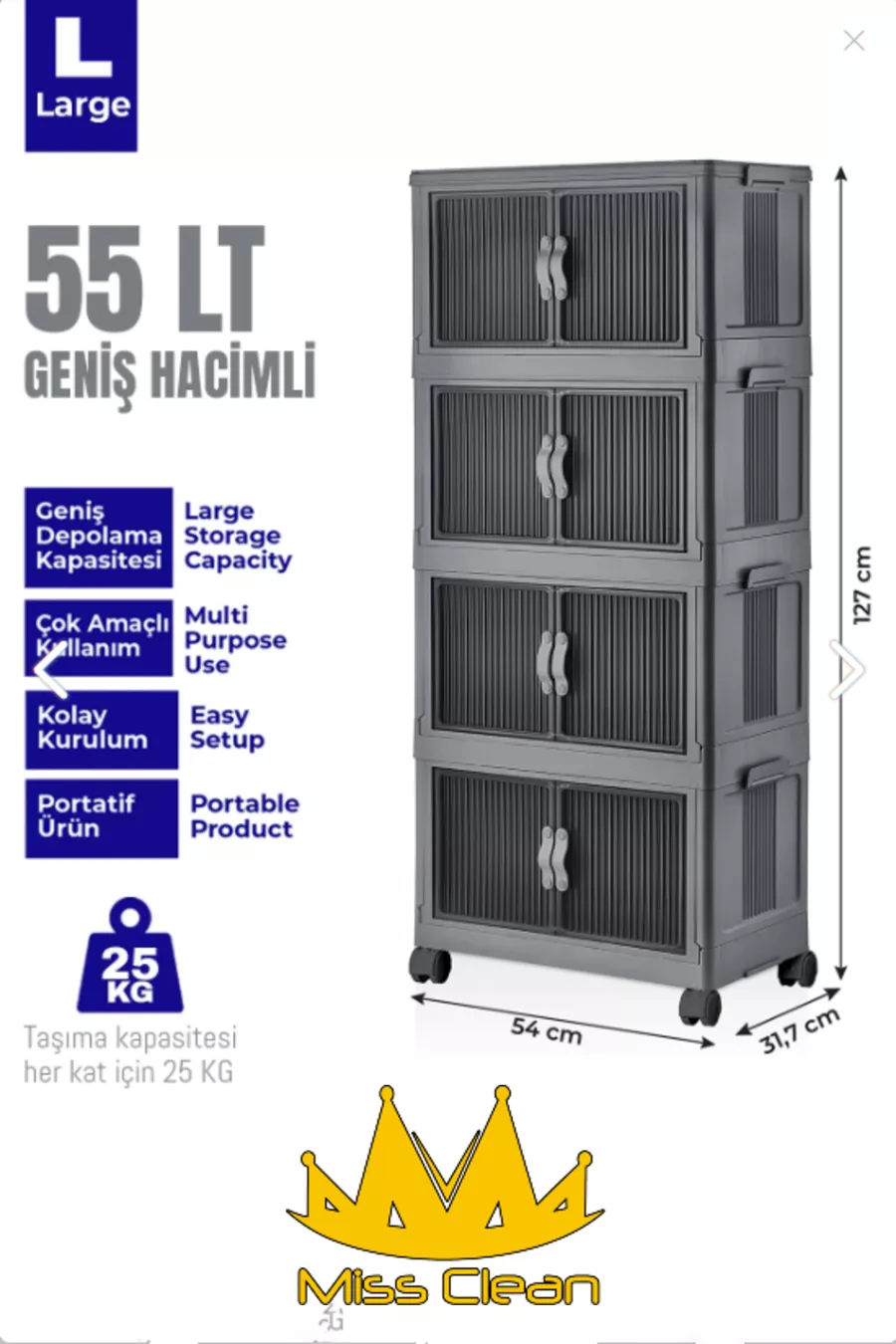 Material: Plastic Number of Drawers: Multiple Color: Gray Model: Vertical Height: 125 cm Width: 51 cm Depth: 31 cm Warranty Period: No warranty Style: Classic Theme / Style: Classic Feature: With cover