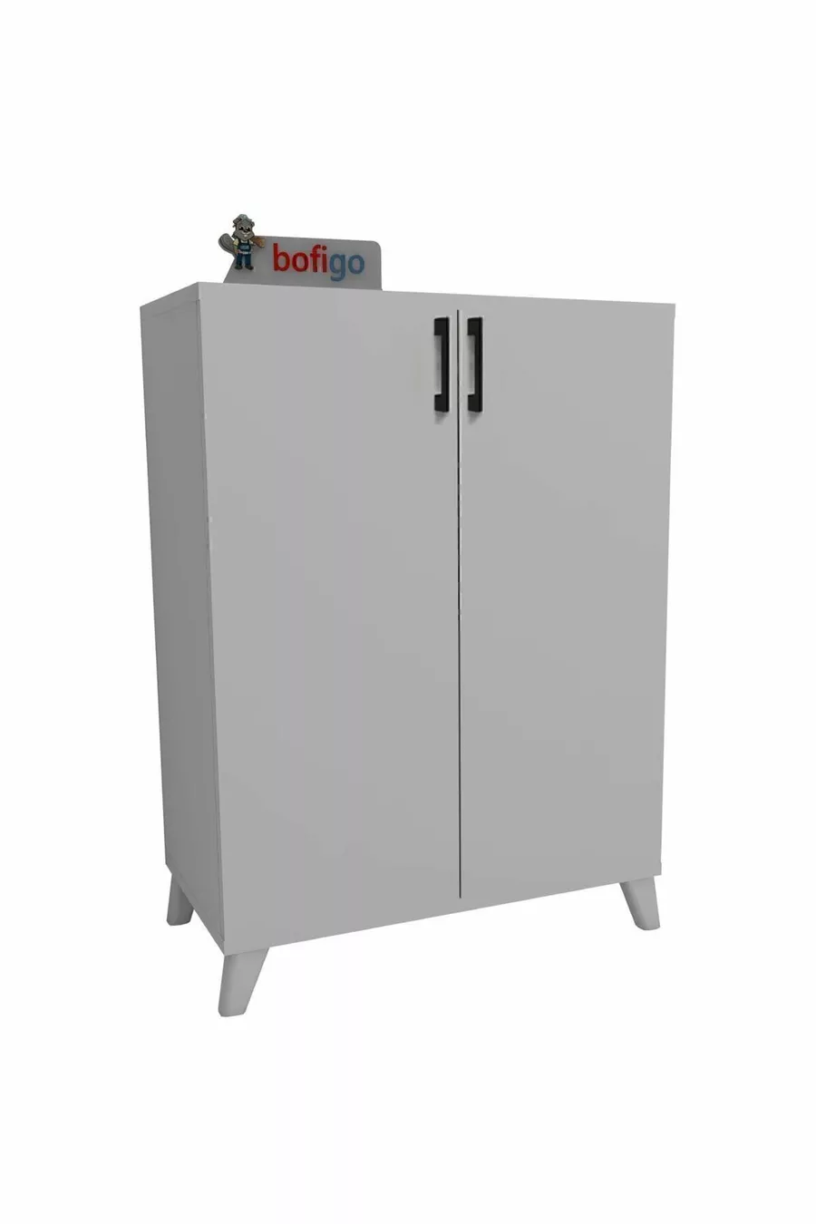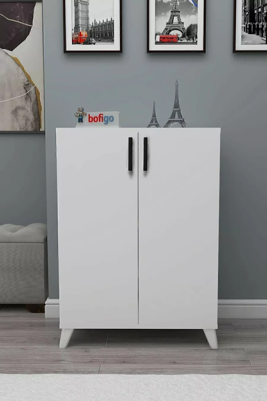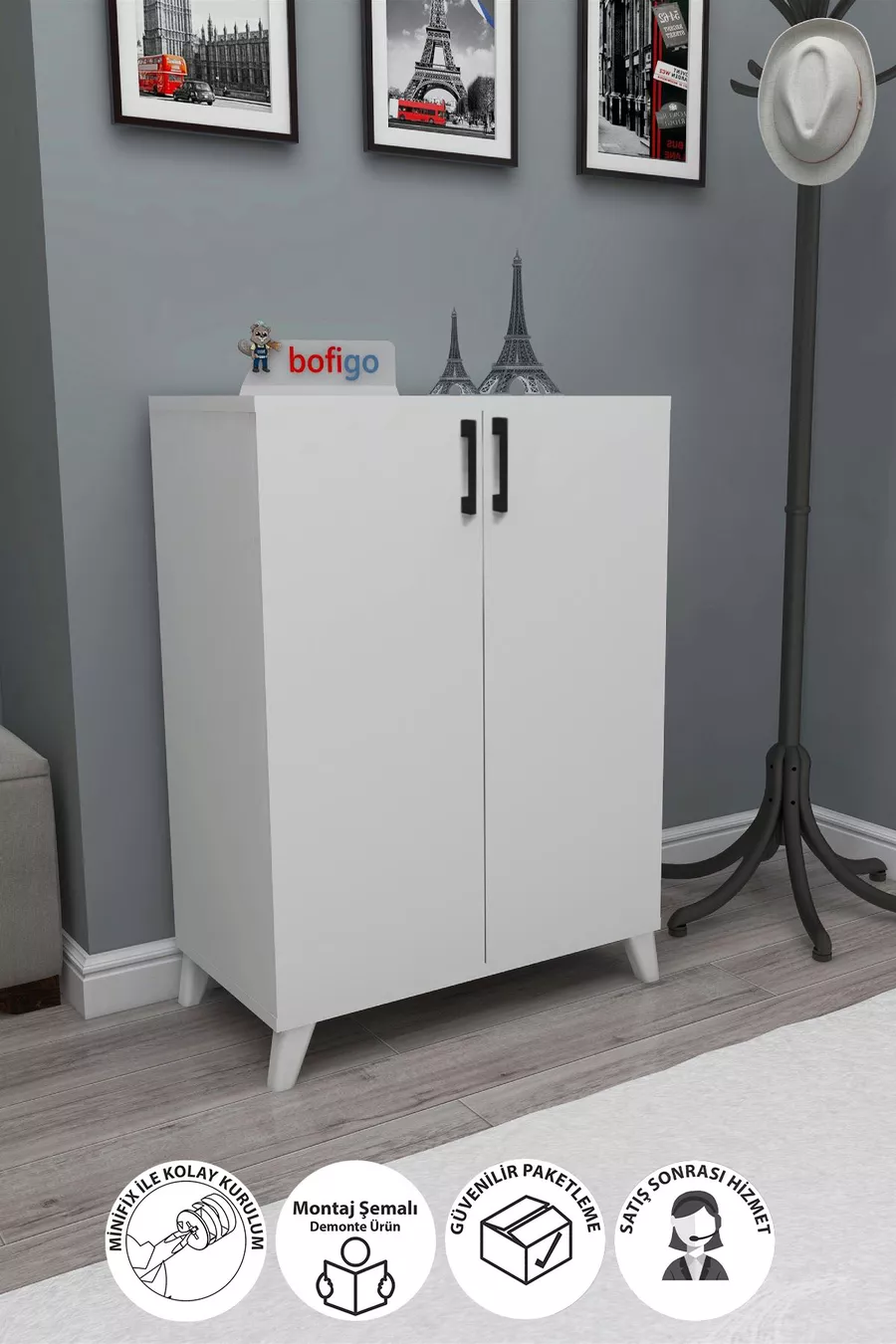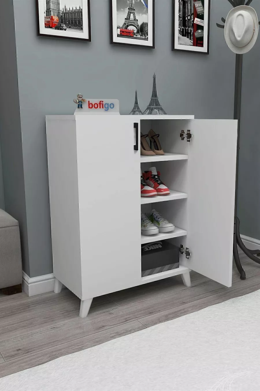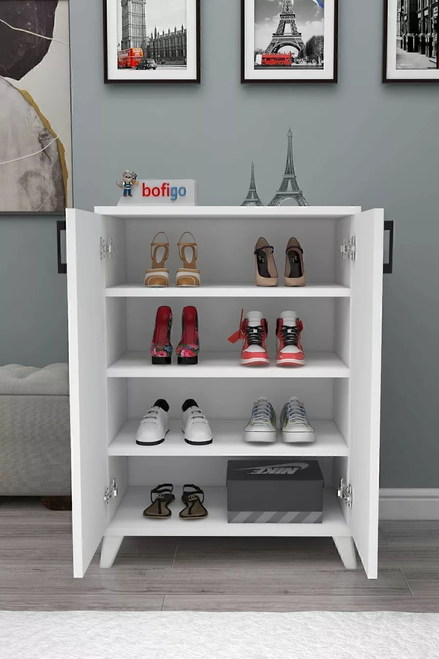 4-Shelf 2-Door Shoe Cabinet Multi-Purpose Cupboard Ceren White