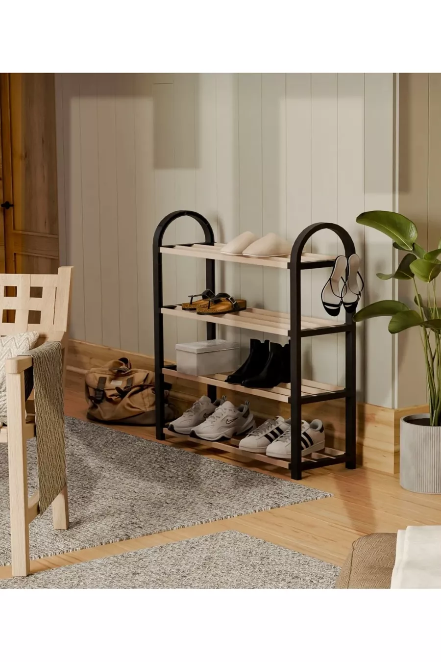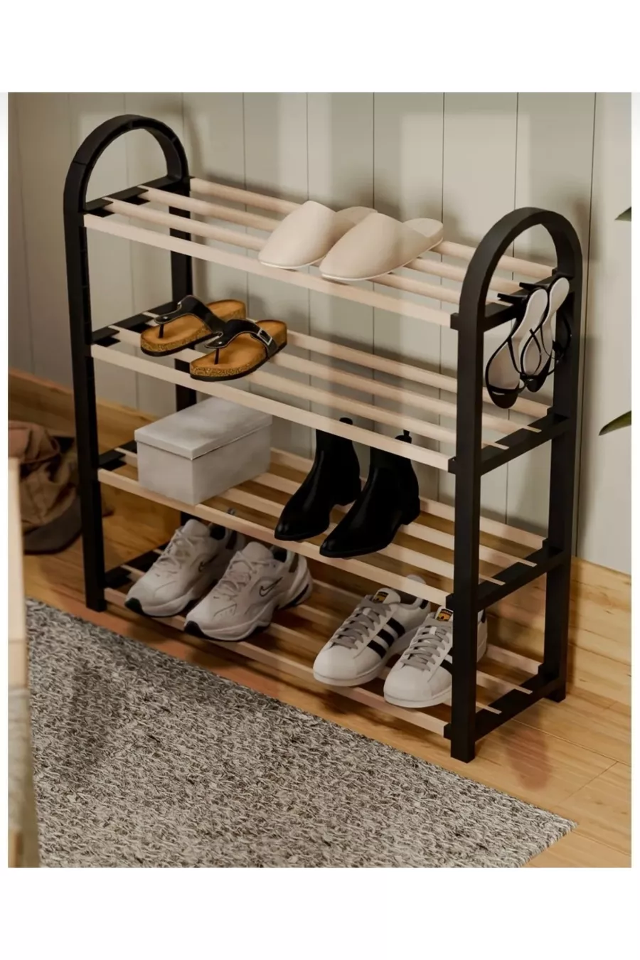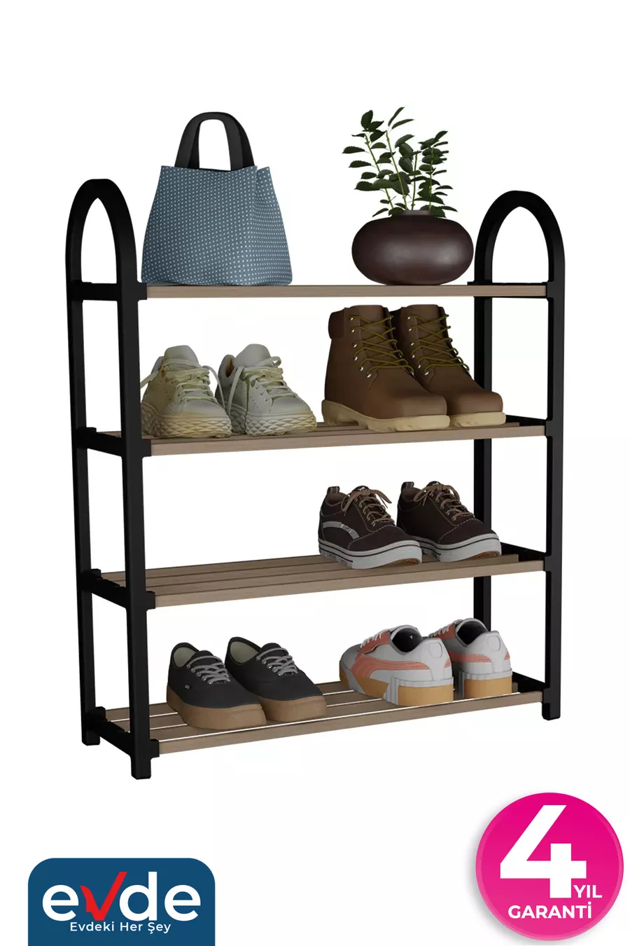 Tip: Classic Material: Wood Color: Black Height: 64 cm Width: 50 cm Depth: 18 cm Number of Shelves: 4 Body Material: Plastic Style: Modern Theme / Style: Scandinavian Origin: TR Feature: Tall