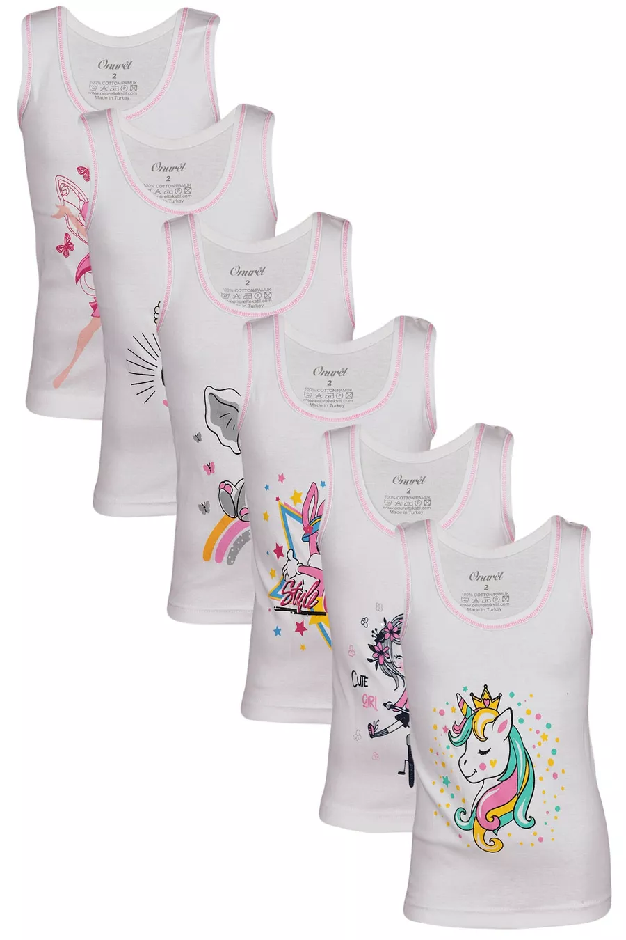 6-Pack Girls' Tank Tops with Wide Straps and Printed Design