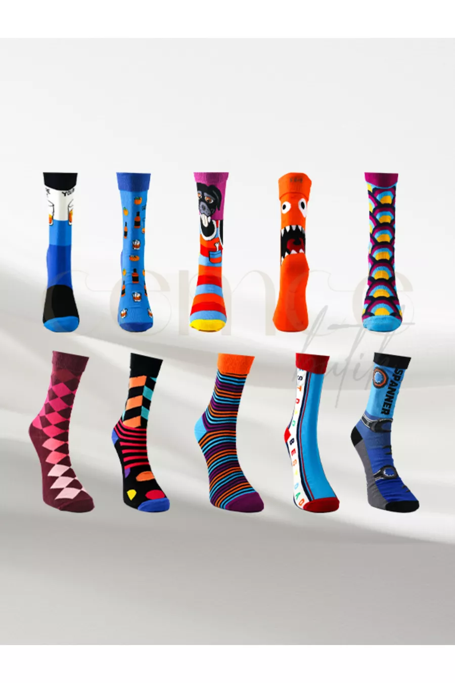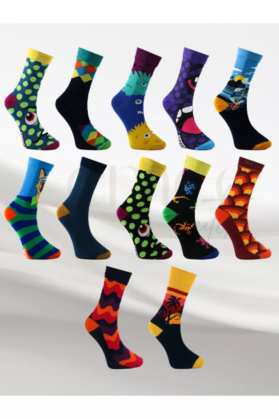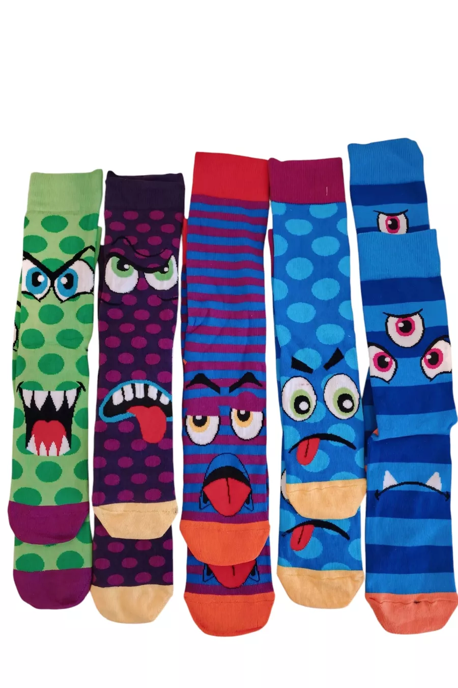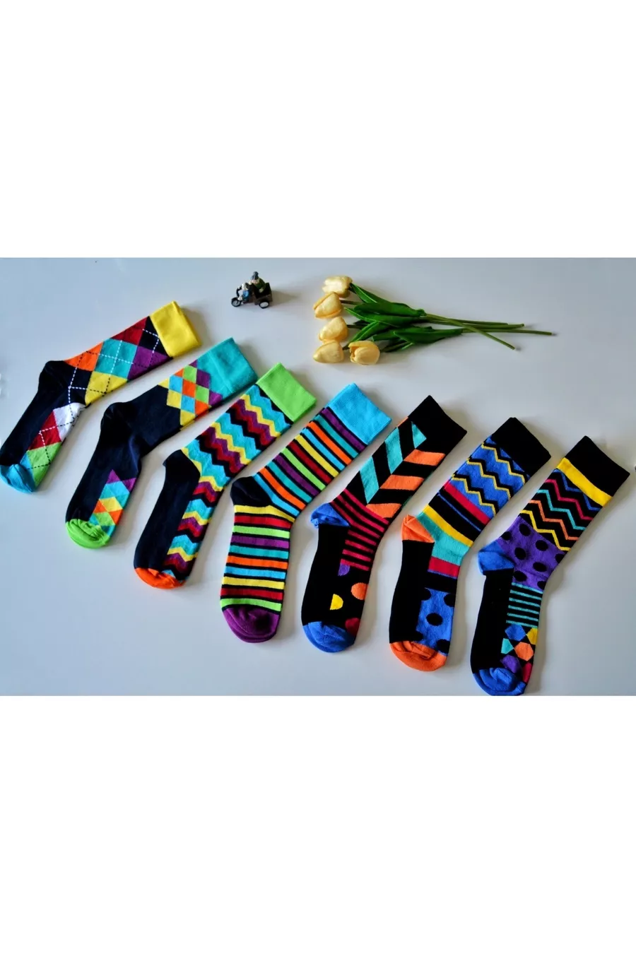 6-Pack Socks with Striped Pattern, Fun Cartoon Design, Multicolored, Unisex Socks for Men and Women