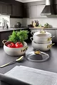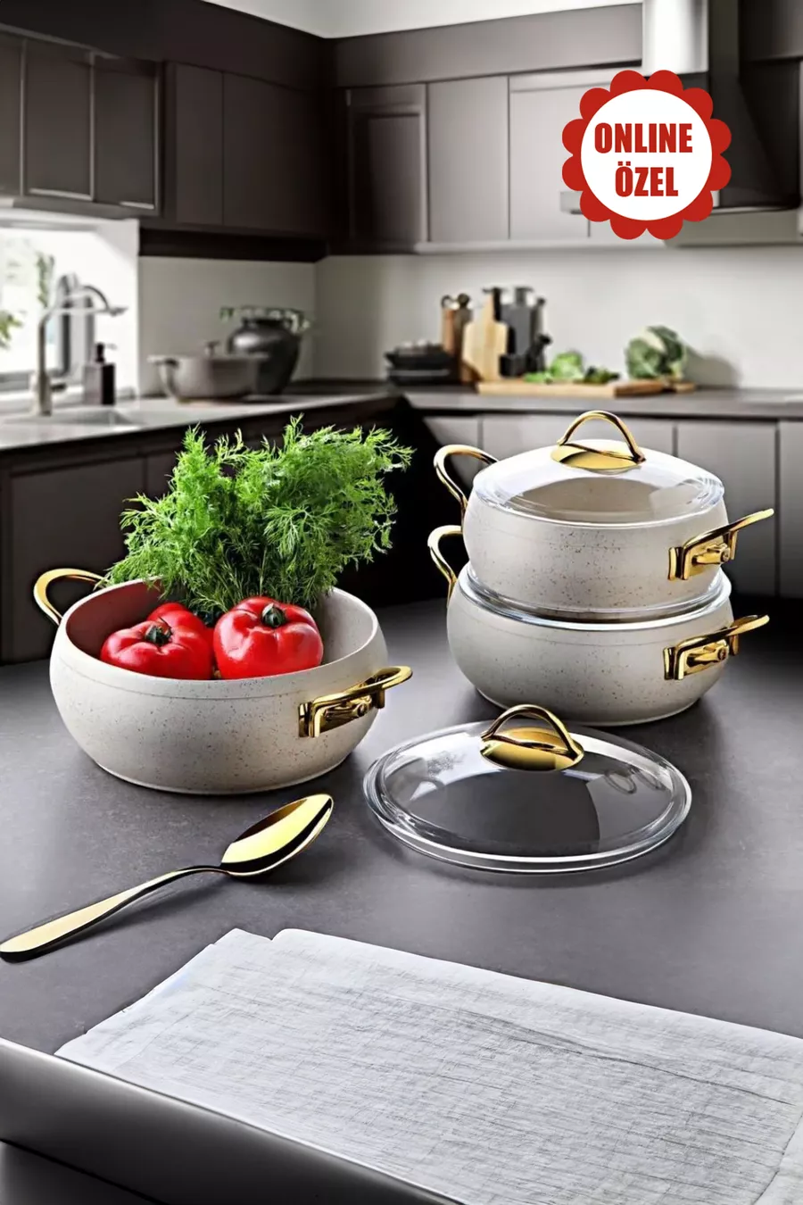 Color: Beige Size/Dimension: 22 cm Volume: 1.8 L Feature: Non-stick Base Exterior Material: Granite Interior Material: Granite Number of Pieces: 6 Origin: TR Care Instructions (Food Contact): Dishwasher safe. Food Contact Symbol: Yes Material: Granite