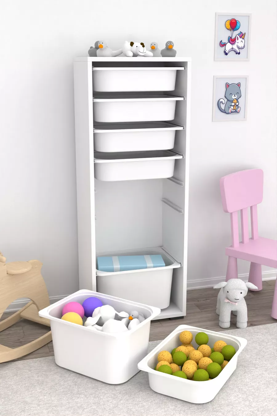 7 Basket Cabinet Toy Cabinet Multi-Purpose Kitchen Bathroom Pantry Cabinet White